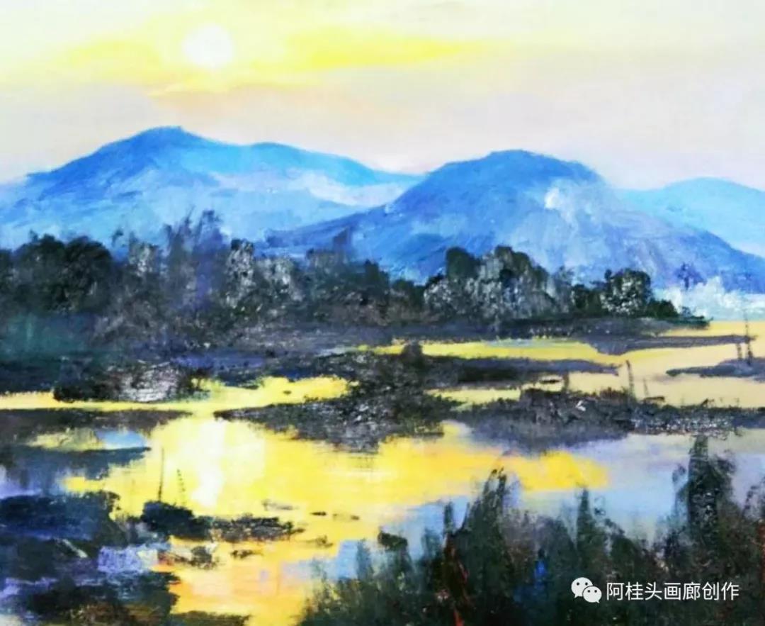 走进刘文桂的画室,看到的最多是风景画,在聊天的过程中谈及原因,他说:“因为我出生在农村,从小就热爱大自然,喜欢家里的景色,所以我一直想将风景画好,画神。这也算一种故乡情结吧。”当然其它的题材也会在以后的绘画生涯中不断的思考和钻研!