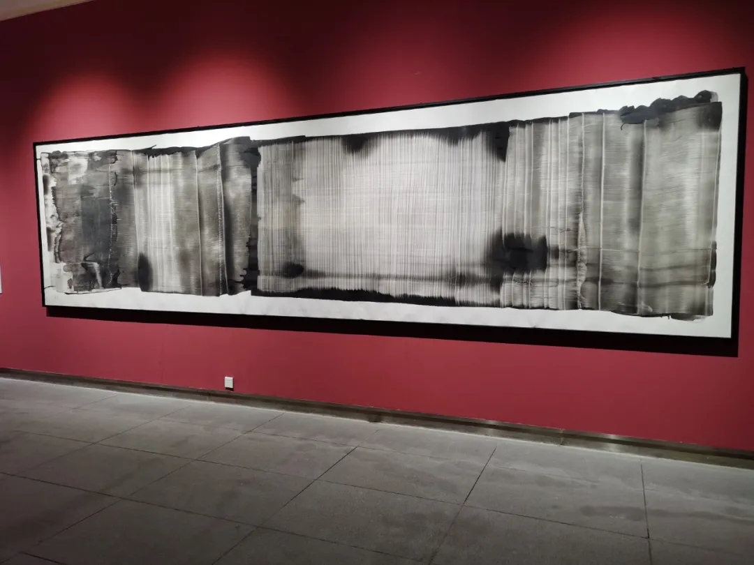◎第二届中国当代艺术名家邀请展新写意主义 展览现场:有关波· 波能猜想的水墨视觉化之七 600cm×160cm 硬纸质水墨 中国墨汁加其它 2019