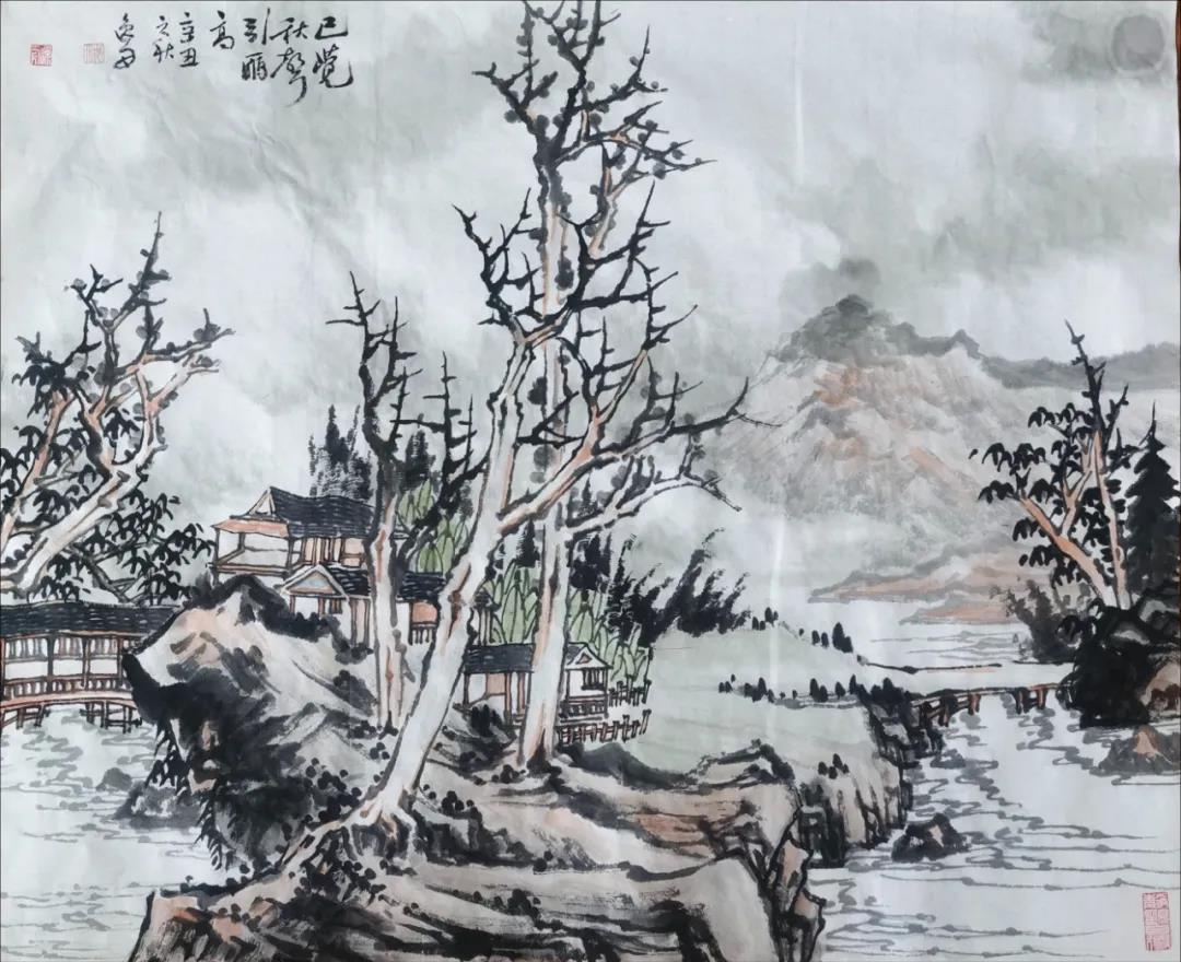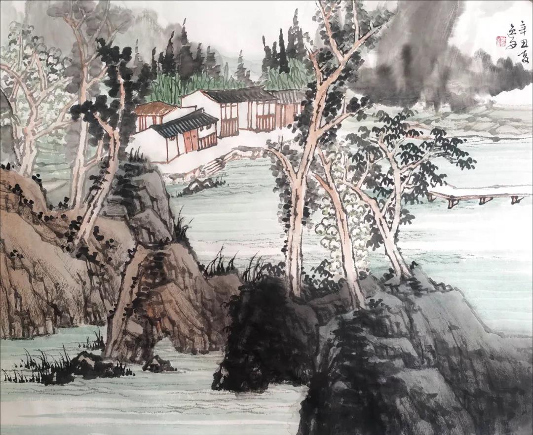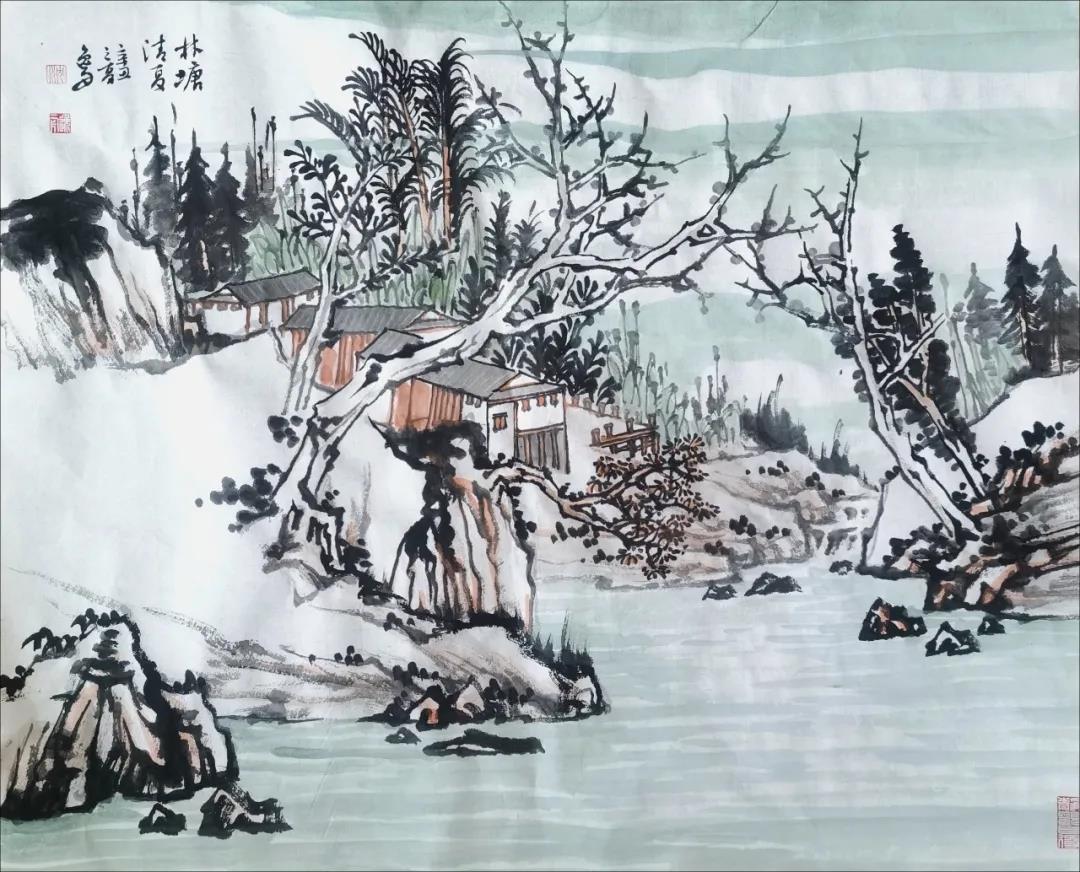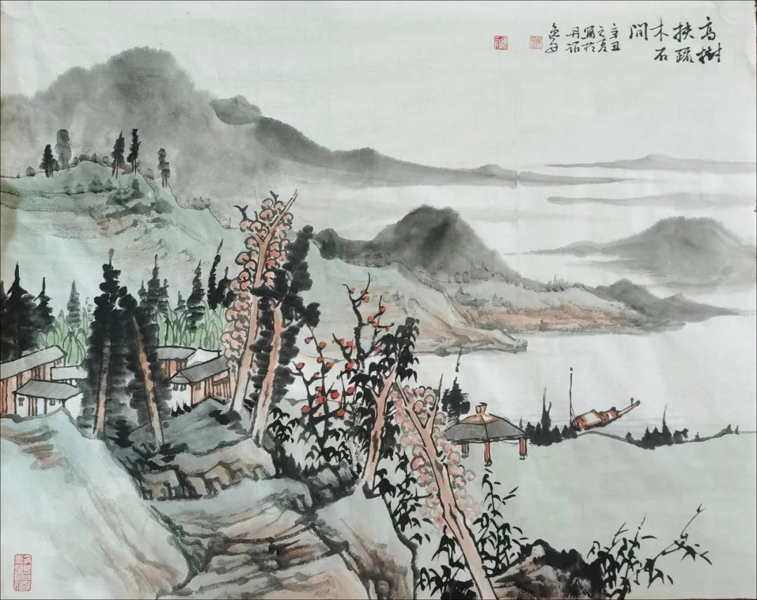 闲下来铺开纸笔,随意涂抹,学古之人情寄山水间,意随清风歇。且以树、石、云、水,绘几幅浮云疏树,长夏江村,卧以游之,以消炎夏。