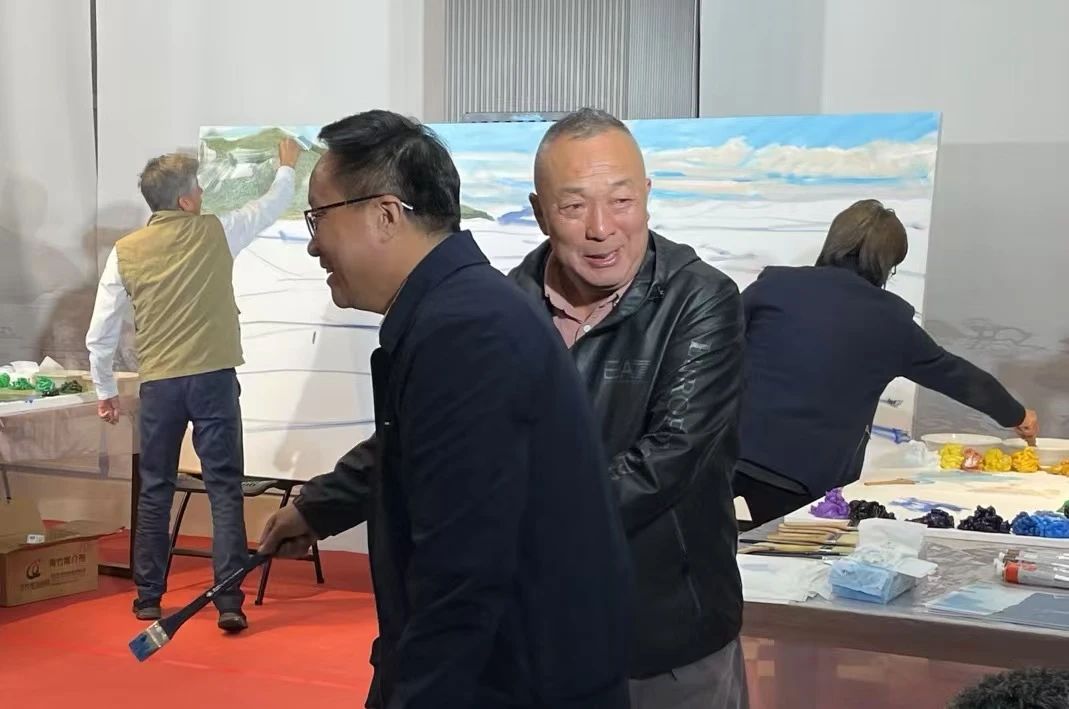 油画笔会现场 当晚,与会嘉宾一行在宁德市艺术馆参观了《以线为骨一一福建省青年画家白描学术展》,并共同合作了巨幅油画《多彩三都澳》。 “山海宁德·多彩蕉城一一万里海疆·中国百名油画家主题作品展福建宁德采风创作”活动自24日开始至30日结束。