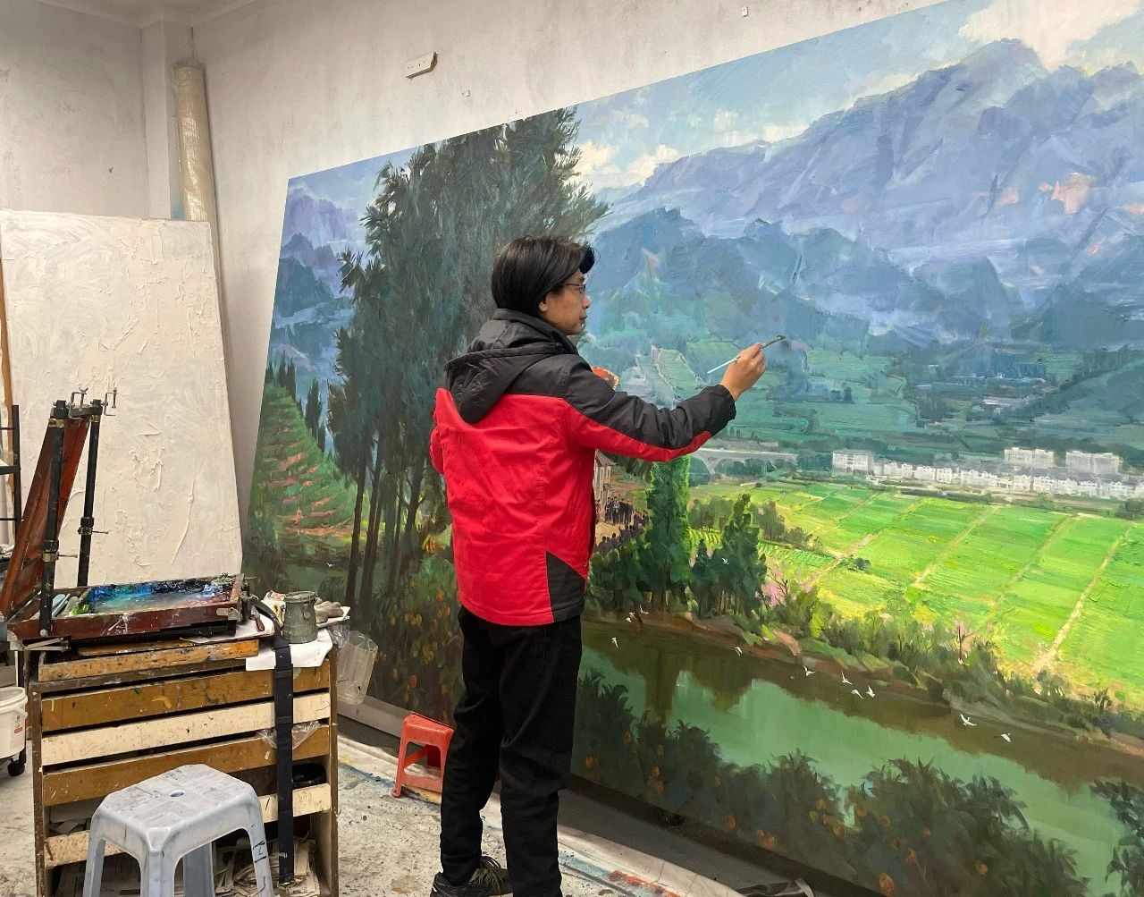 五、结语 《九仙之春》以油画为载体,将历史记忆、现实成就与艺术想象熔铸一炉,既展现了闽东畲乡的沧桑巨变,也成为主题艺术创作服务时代的典型案例。通过王裕亮教授的讲述,我们得以窥见画作背后的历史厚度与艺术匠心。