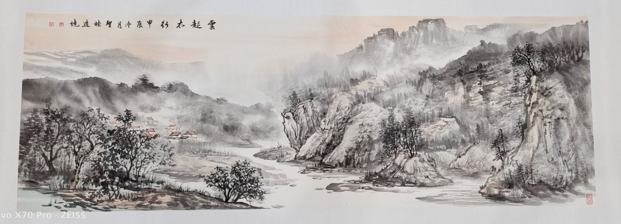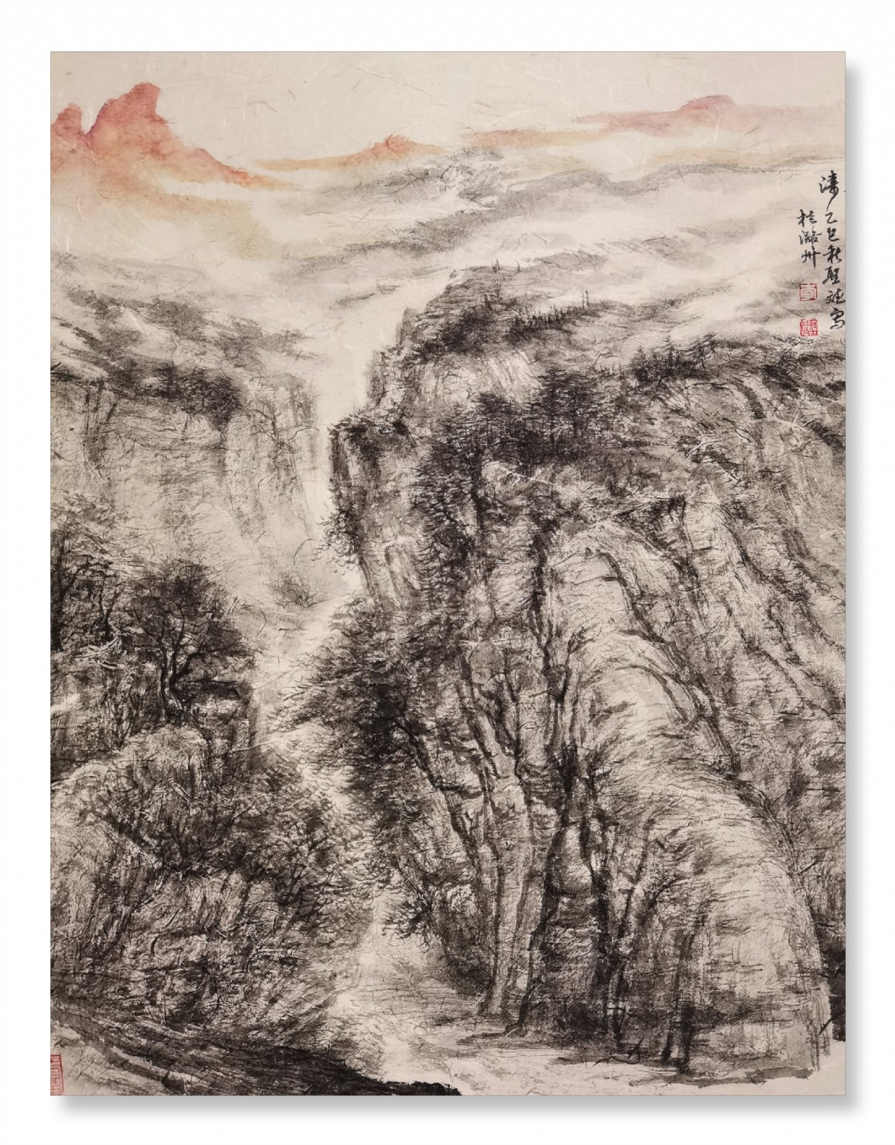 太行山水画艺术从来不是对山石草木的简单摹写,它是画家以笔墨为凿,在方寸间重凿太行的骨,再酿山水的魂。作为深耕太行山水三十余载的寻道者,带着对太行的“听”与“悟”,在宣纸上与山对话,让峰峦的形藏着声,任笔墨的迹裹着情。山水间流淌的自然声息、历史余韵与时代共鸣,恰似一场创作过程的“寻响”与“传响”的修行。