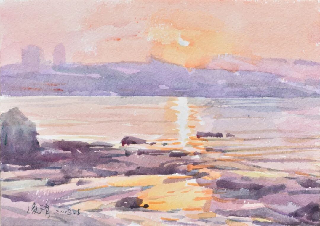 “水彩的乐趣在于它的挑战性,在绘画的过程中随时可能遇见不可测的因素,也更考验一个画者控制画面的能力,它不像油画那样方便涂抹和修改,有些时候,你或许只能无可奈何的看着它留下遗憾。完成一幅水彩作品,起笔落笔间是创造和面对困难的过程,它激发了我的热情。”现在黄俊清几乎每天晚上都留出一两个小时画画水彩,让自己处在安静的状态,欣然而见作品的呈现,这一切冲刷了一天的疲惫,每天天一亮,看到昨晚创作的作品,他内心却是愉悦欢喜的。