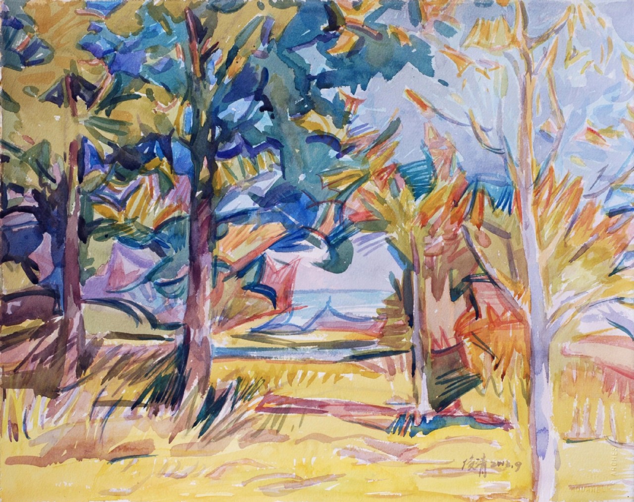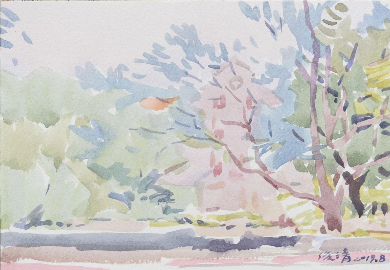 最初见到黄俊清先生的水彩作品是在一家茶室里,画面上风景秀丽的树林、熟悉的厦门大学嘉庚建筑、醒目的红屋顶让人突然眼前一亮,心情为之愉悦舒畅,而这正是黄俊清喜欢的画风。他的作品是安静的,就像他热爱的生活一样,他创作的题材以风景为主:宽广的大海、辽阔的天空,还有校园里的树木、红房顶、流动的云彩,这些都是他身边最熟悉的景色。