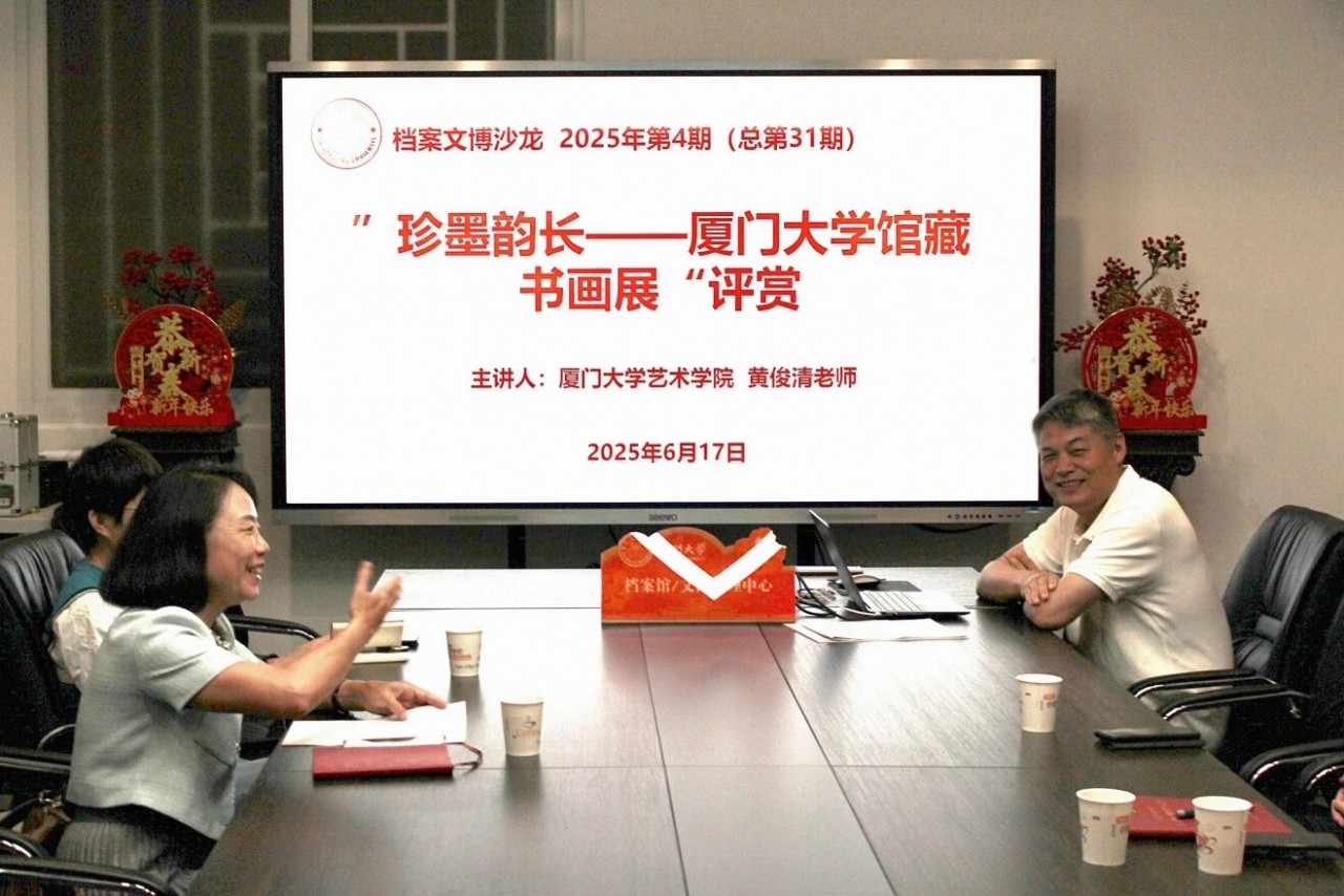 最后,与会老师移步二楼“珍墨韵长——厦门大学馆藏书画”展厅,共赏丹青墨韵,亲鉴意境风华。展厅内,大家将刚学到的鉴赏理论融入实践,曾经晦涩难懂的画面,在理论与实践的碰撞中,绽放出鲜活的韵味。本次讲座,与会老师不仅提高了对书画作品的认知水平,而且更加深入地领略了厦大馆藏书画的丰富内涵和独特魅力,增强了文化认同与文化自信。未来,档案馆/文博管理中心将坚持以美育人、以文化人,持续推出高品质展览活动,助力培育更多兼具审美素养与文化担当的时代新人。