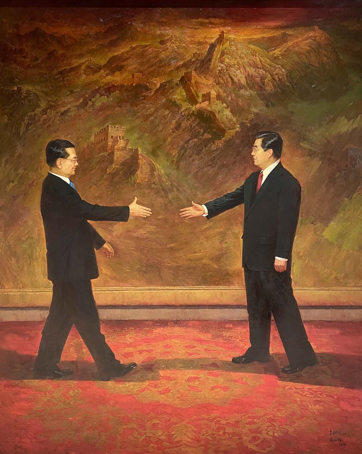 王裕亮 杨幼梅《破冰之旅--胡锦涛会见连战》 280x350cm
