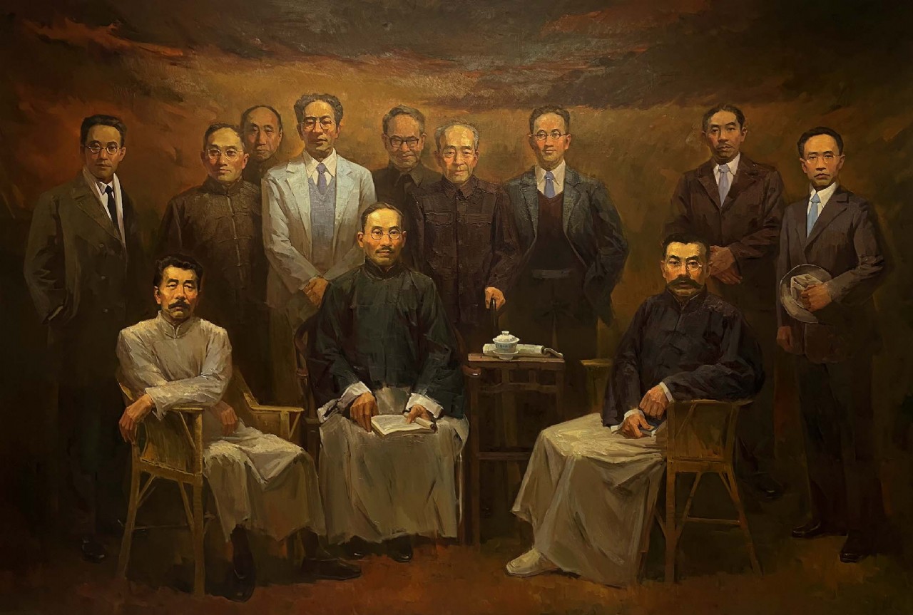 王裕亮《郑振铎和挚友们》250X370cm 2024年