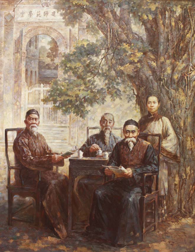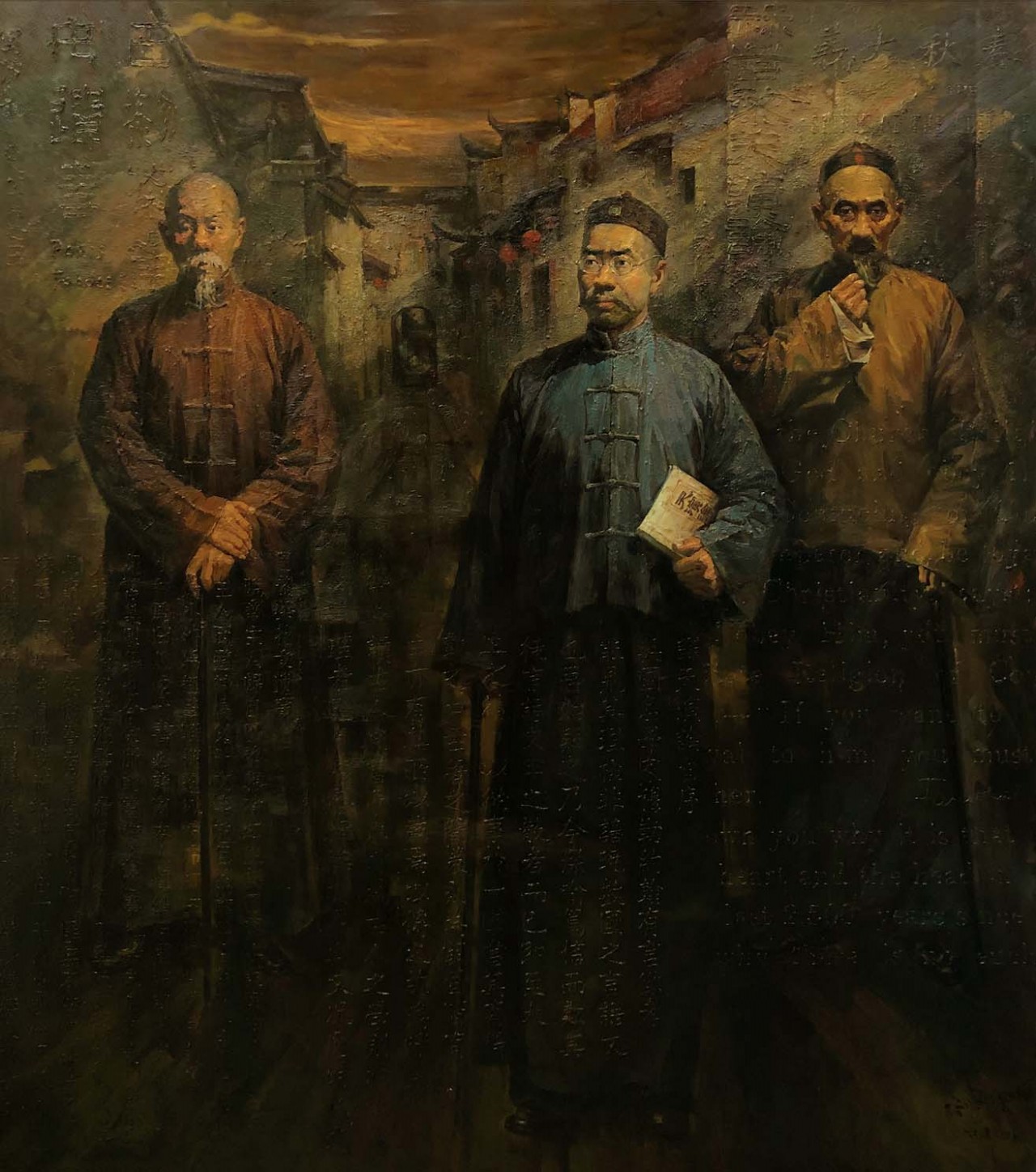 王裕亮 杨幼梅《译坛先驱---严复、林纾、辜鸿铭》200x180cm 2018年
