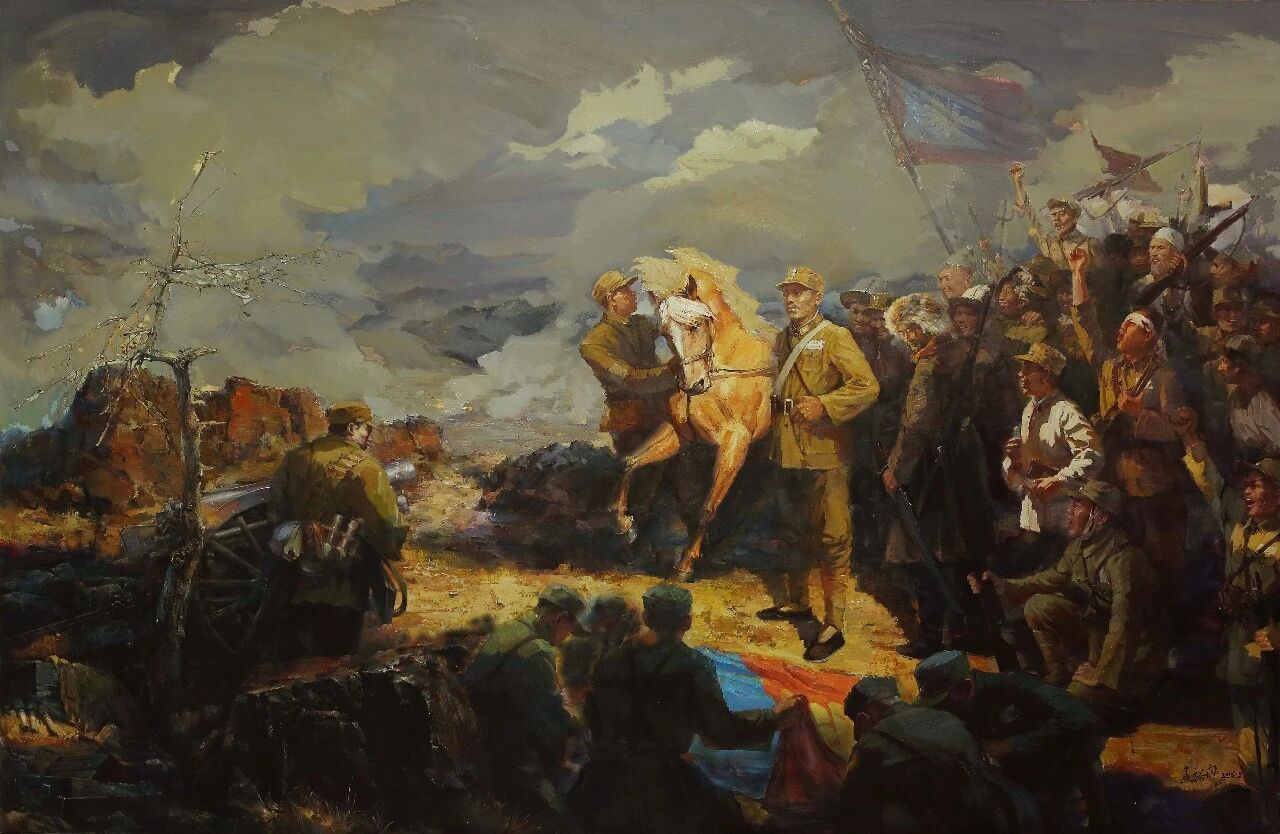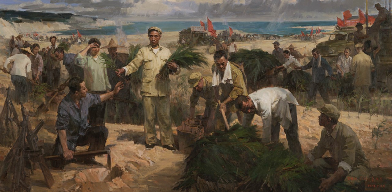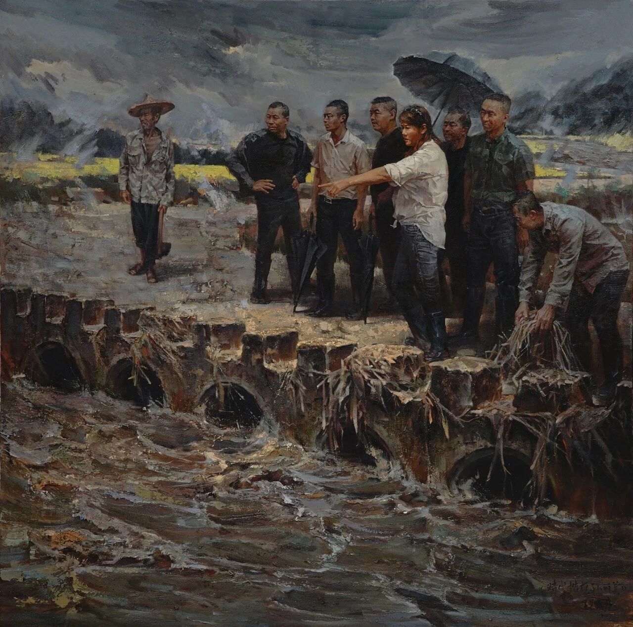 问:这些作品都是在什么样的契机下创作出来的?创作历史题材主题性美术作品您认为有什么意义?答:我这些年创作的主题性绘画创作既有来自政府项目,也有基于个人艺术追求和兴趣的创作。首先,政府组织的项目分为主动投稿竞争和被动参与两种。近年来国家组织发起的各种美术创作工程、国家艺术基金、文艺创作扶持项目等,这些是向全社会征集的,每个人都可以参加竞争。作品《陈宝琛》《郑成功收复台湾》《绿色丰碑——人民好干部谷文昌》《译坛先驱——严复、林纾、辜鸿铭》《破冰之旅——胡锦涛会见连战》等是属于这一类的,我会根据个人兴趣和对事件的熟悉情况来选择选题进行创作。而《闽水万古流》《中蒙边境保卫战》《“向东”风云》《万人空巷》《时代楷模孙丽美》《难忘下党》《生命的呼唤》《九仙之春》等是政府有组织、有针对性、有指向地根据某个文件或活动的需求进行创作的。我的创作选题方向路线总体上是立足于家乡、立足身边的人和事件。历史题材主题性美术创作的意义在艺术性和思想性两个方面。这类作品是集艺术功能、认识功能和教育功能为一体。一件优秀的历史画作品首先是思想性要高、立意要好,要能准确把握历史、真实再现历史和生动表现历史,这个很考验艺术家的文化修养和品格。因为作品创作出来给老百姓欣赏要能看得懂、还要有教育和认识的意义。其次,作品必须是一件好画,在艺术性上,个人绘画语言上,风格技法上都要经得起专业的推敲。