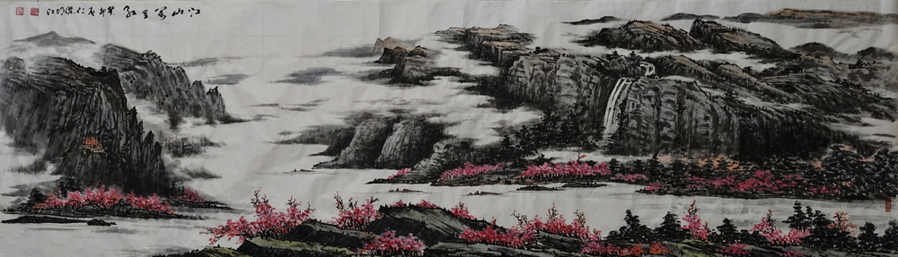 胡雄江的艺术风格在山水画中表现尤为突出,他通过对自然景观的敏锐把握和大胆创新,形成了自己独特的艺术语言。