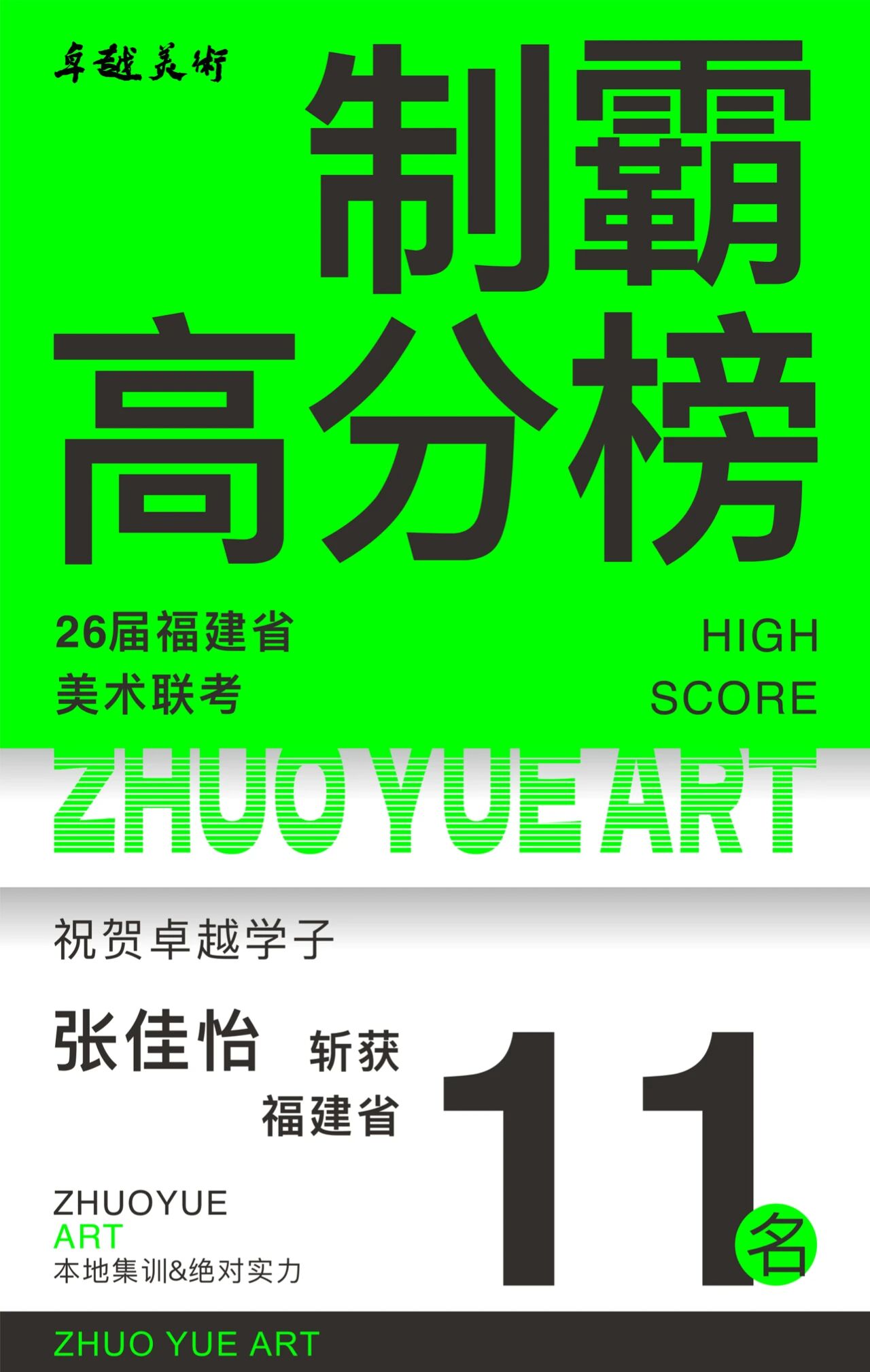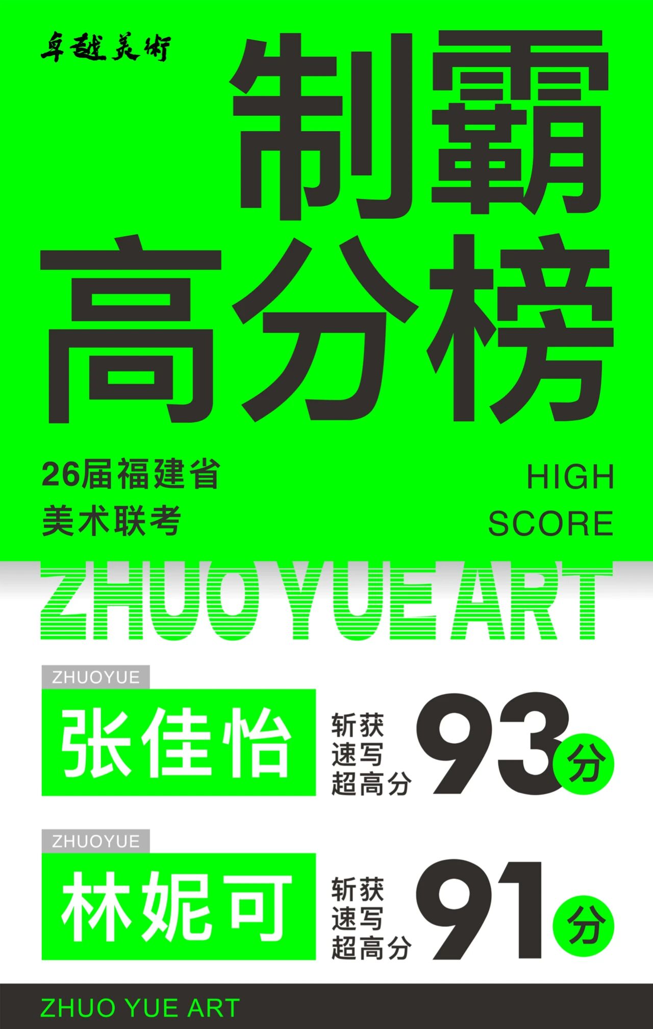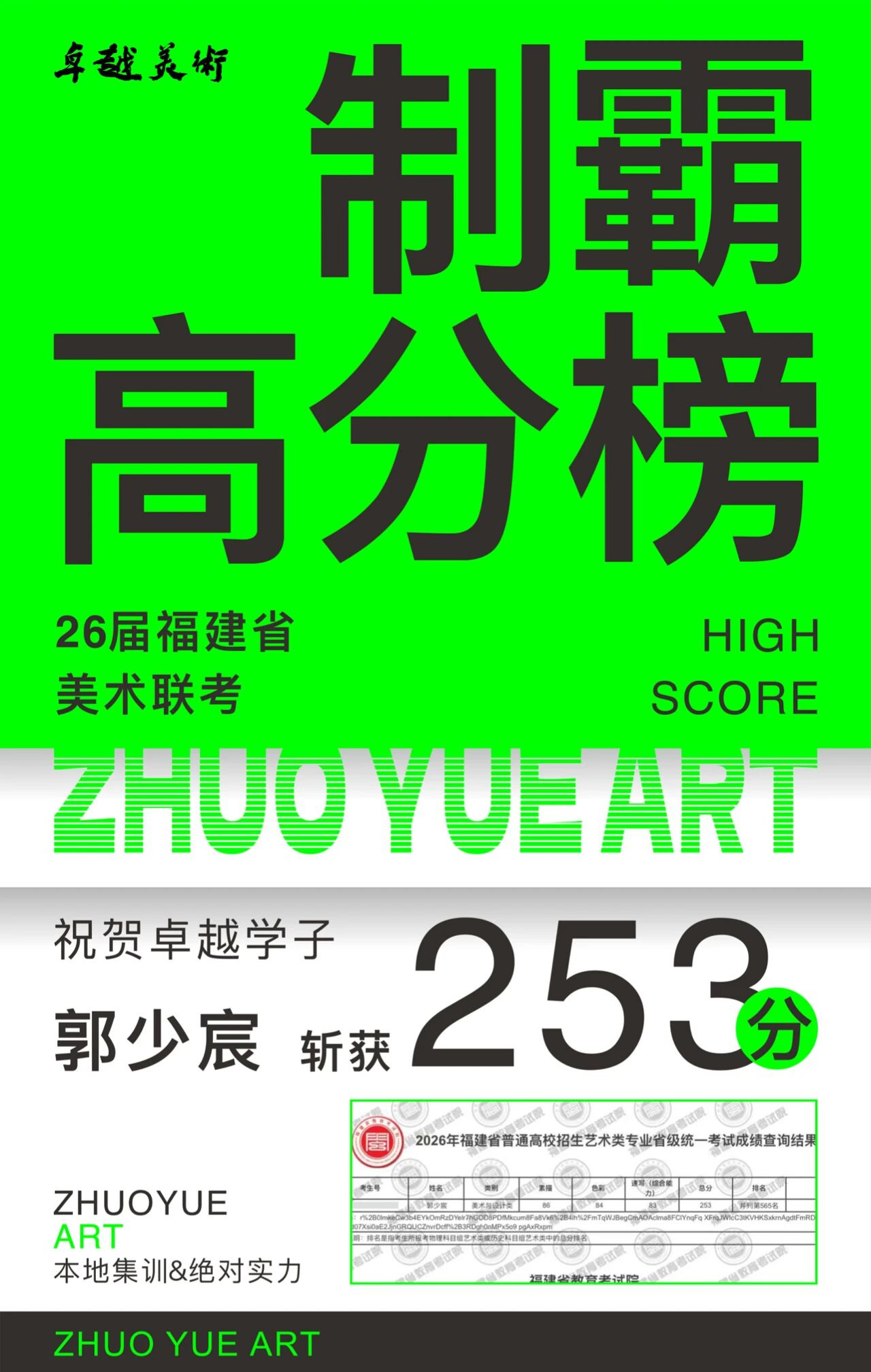【联考大捷】祝贺卓越美术2026届取得全省第11名2人!制霸高分榜!