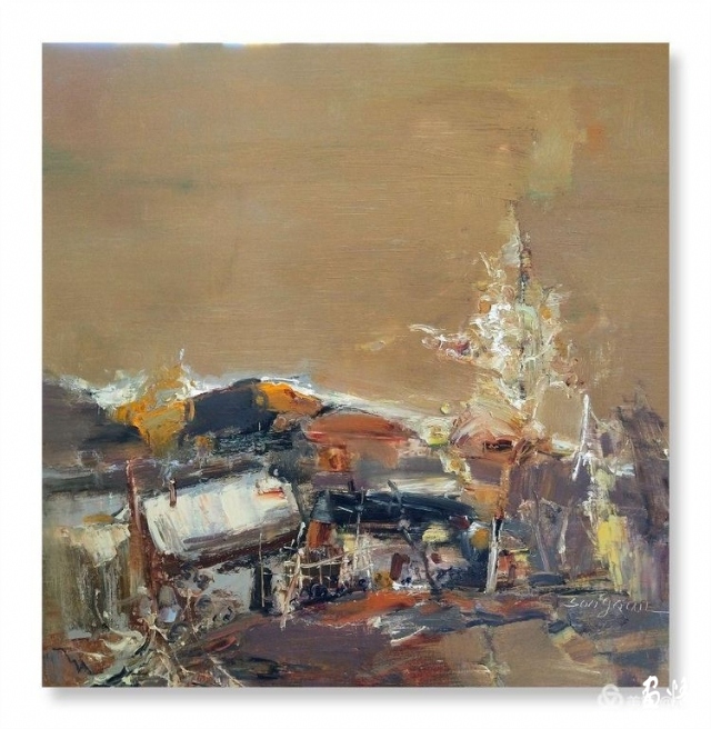 九月,是上苍恩赐给画家的最好时节 。它会使你情不自禁地放下忙碌走出家门,在暖暖的秋阳里支起画架,山间溪畔,田间地头,到处都有我们的身影。这儿很美,美的像个童话世界,白云仿佛长在了屋顶,又像一朵朵手撕的棉花糖被抛向湛蓝的碧空。回眸就是一景,转身就是画面。这种自然之美是神圣的,就算用最最明丽的色彩,也很难表达出那种独特的不可复制的秋韵。同样的色彩,可以画出不同的感受与画面。此刻,色彩随心而舞,大大的太阳把后背融的暖暖的。秋阳里,一群快乐的人在做着快乐的事。一份真诚的感动,一种快乐的情绪。喜欢在自然之中放空自己,静赏落花,闲看白云。一块布,一支笔,几多色,一腔情……