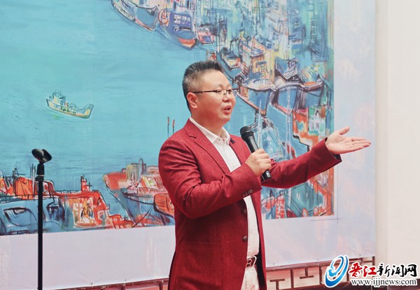 据悉,这是张及时应邀第一次回到故乡晋江举办个人画展。他在发言时说,他的作品表达“海洋”和“乡情”,回到晋江和泉州创作,和别的地方不一样,在采风过程中,得到各地领导热情欢迎和支持,他在创作过程中发掘晋江的“海丝文化”“侨乡文化”“红色文化”“历史文化”,发现晋江真的很美。