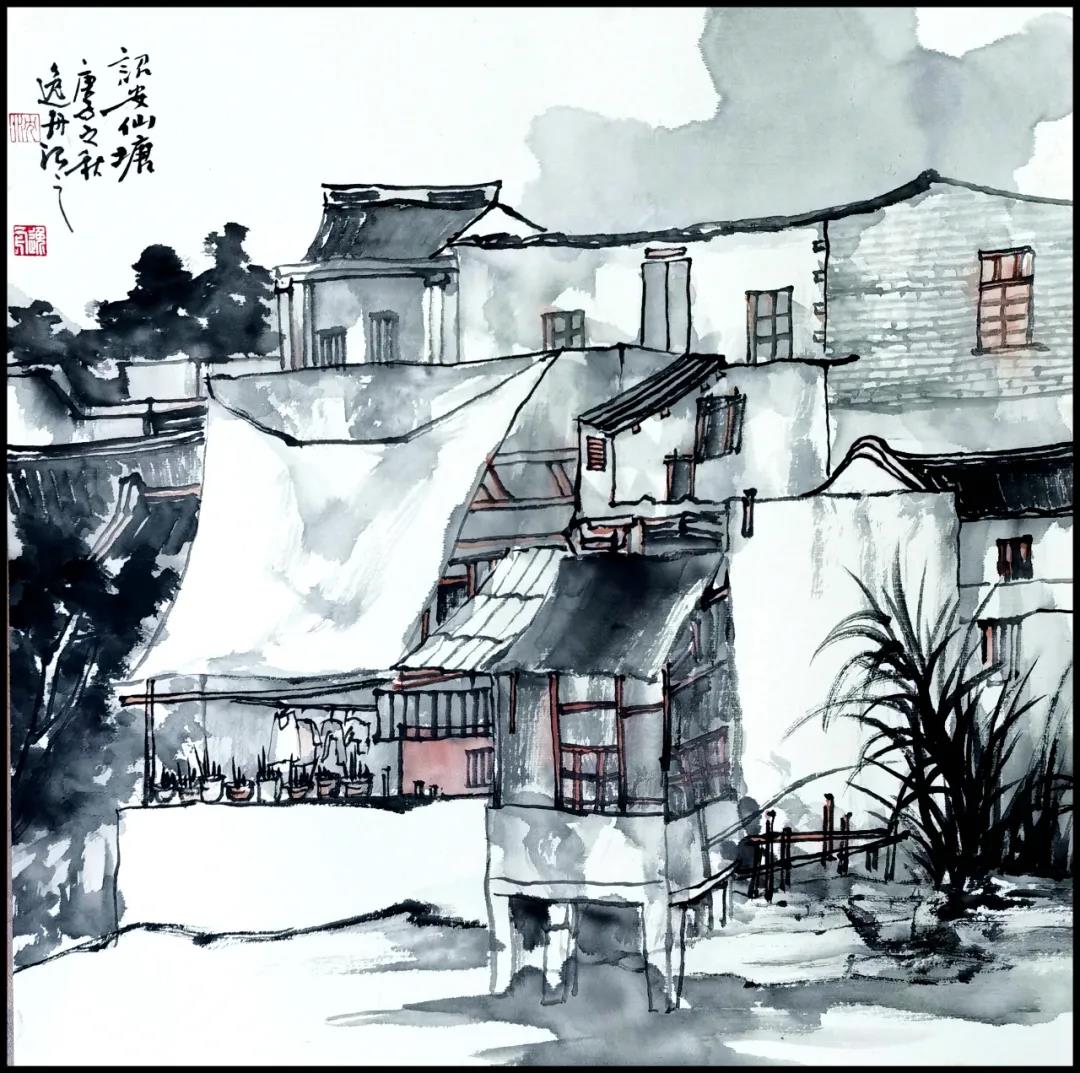 喜宗便是仙塘人,高高瘦瘦象是他笔底下画的仙鹤,有那么一丝仙气。带着我们在村里村外走着看着找最佳写生点。我们一连画了三天,中午都在喜宗家吃饭,难为喜宗爱人天天变花样给我们煮午饭,自己虾池的虾、螃蟹,自己田里的米和菜,纯天然无污染,算是写生日子里最奢侈的一次了。