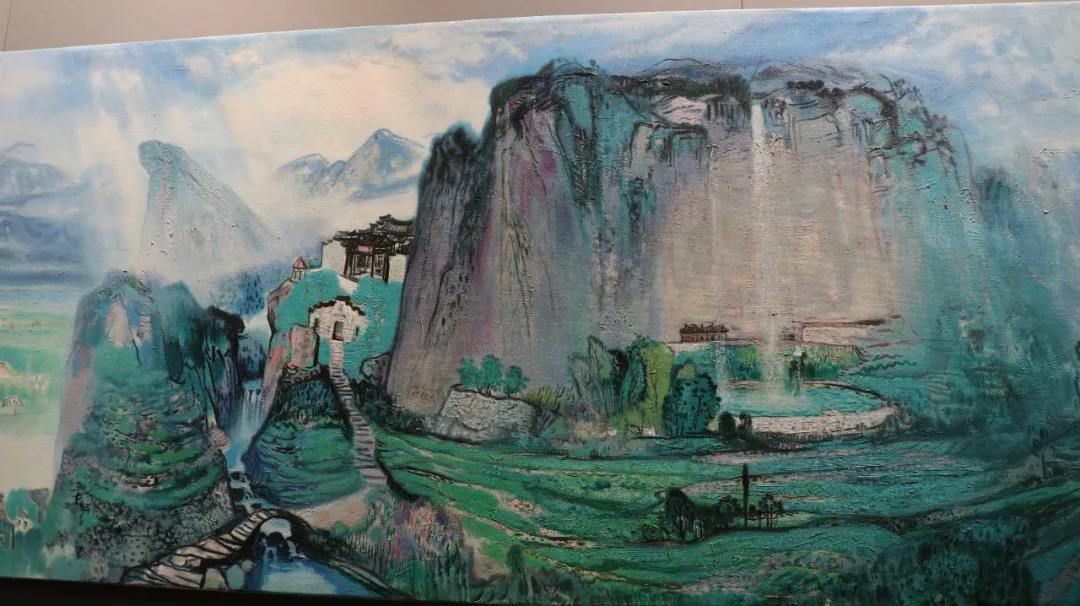 12米长卷油画《印象武夷》揽尽武夷山水,云雾缭绕,壁立万仞,茶园青翠,九曲竹筏逐浪,武夷山水的俊秀灵动跃然纸上。
