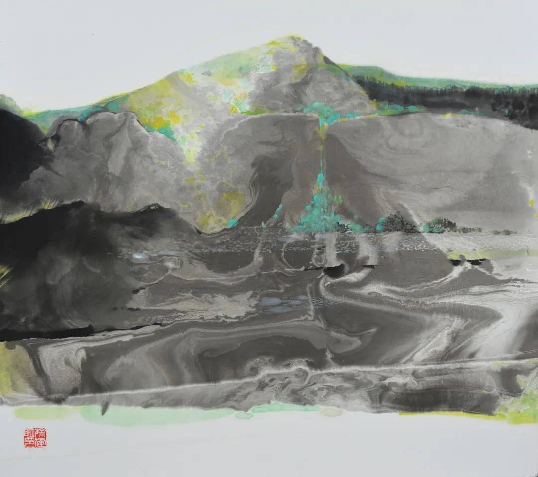 这就不是传统中国画的作画起点。胸中非但无竹,胸中空无一物。然而这种破坏式起步的方式是具有强烈建设性的,目的是为了不在窠臼里打转,一开始就用新鲜的东西引领着自己往下走,逼迫自身的非常规走向。