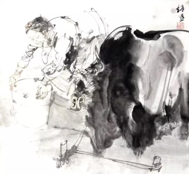 身处南国的赵星,却始终对西北的黄沙大漠有着难以割舍的情怀。在他的画中,商旅驼铃、金戈铁马、高原风,以及劳作的藏民,都成为不可或缺的题材。在《月上边关》《风起大漠》等系列作品中,无论是戍边的将军还是手提马灯的少女,无论是骏马上的汉子还是泉边的卓玛,都具有苍涩遒劲的气质;但同时,又有些许不易察觉的哀愁,北方浑厚的气象与南方朦胧的韵致,被略微奇妙地结合在一起。赵星的笔墨兼取书写性和写实性,具有较高的技术难度,这一点,保证了他在细节繁冗的写实场景中,洋溢出文人画般的灵秀逸致。——张小凌(中国国家画院副院长、著名美术理论家)