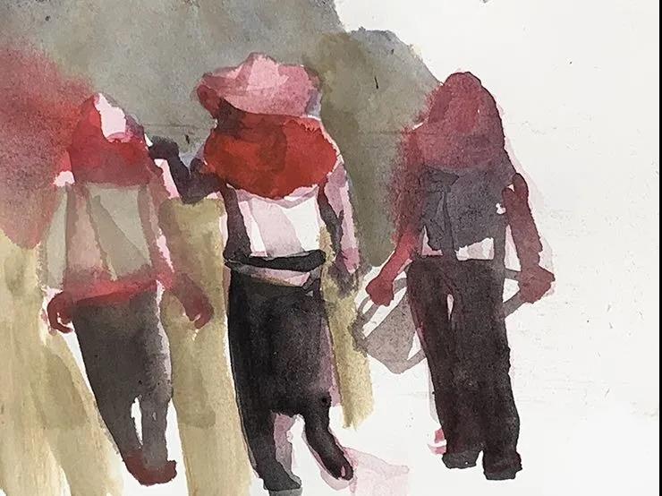 他知道水彩是画上去可以,去掉却不容易,这种不可逆的特点使他想到用轮胎皮来回刮擦,后来他改用刮刀,刮去那些画上去所形成的形,刮出那些偶然出现的神奇效果。刮的功夫于是有一种化腐朽为神奇的力量,混合、交融、迹化,画笔无法得到的感觉,在刮擦的过程中出现,好似冥冥中真有神助。我们很容易把这个刮擦功夫解释为技术过程,第一步还真是从技术出发。