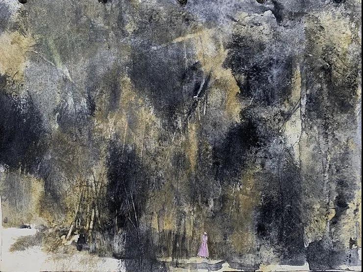 无法预测要经历多少折腾,更难逆料在哪个瞬间结束,要看他对画面的满意度。作品进行过程,离对象的辨识度越来越远,离他内心想要的感觉越来越近,那些他想要的感觉与内心合拍的那刻,是去掉什么与放进什么达到那审美的激起,一幅作品在激起时完成。他的画尺寸不大,却有一个大气象,好像是宇宙洪荒的一个局部,又好像是无边无际大世界的一个概观。心很大,世界随之大,画家与作品得到心的印证。