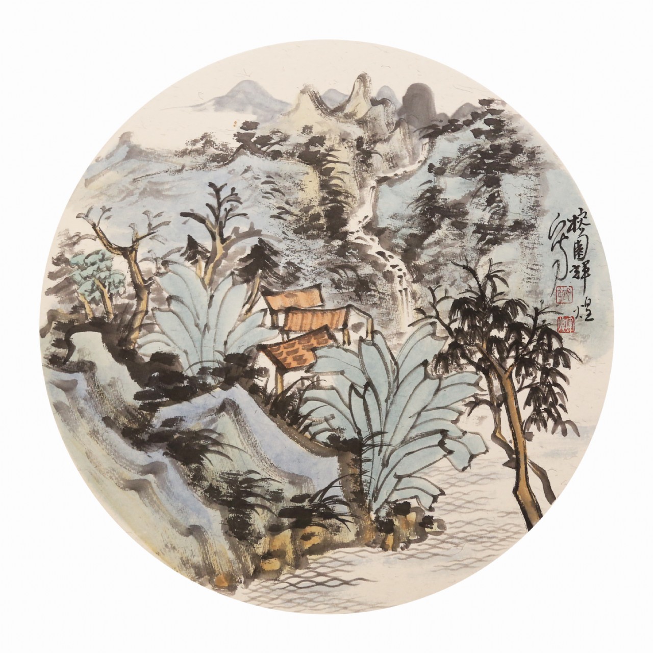 《灵山秀水》33cmX33cm卡本水墨设色2021