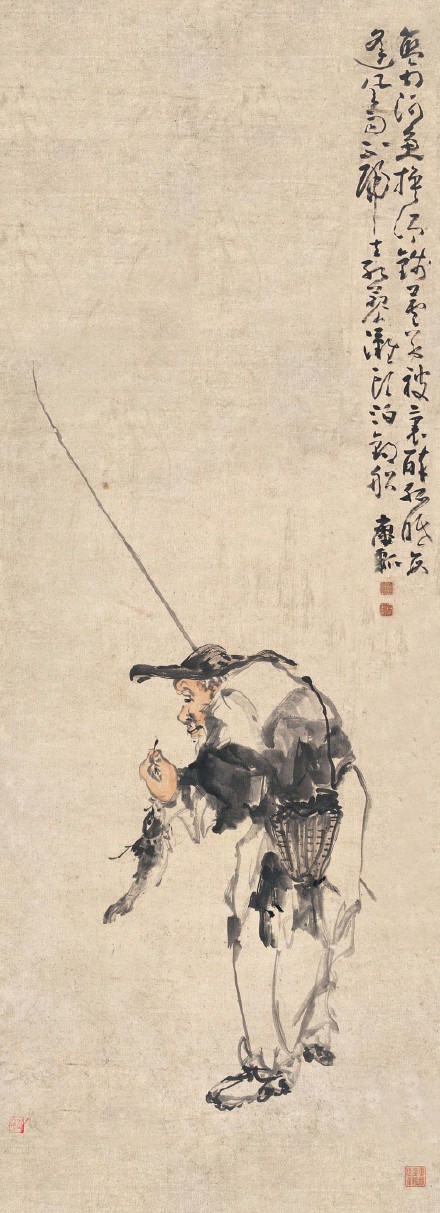 如果不题诗以点明立意,这种没有环境背景的水墨写意人物画,便像一幅普通写生练习,或某个主题性创作的局部人物,艺术价值不大。要是画成写实性的水墨院体画,只简单写个标题,比如“农民工”、“进城”、“劳务市场所见”之类,也不如看艺术摄影,更有生动细节可欣赏。然而一旦题了诗,它们便如传统文人画系的古装人物创作(如上举黄慎作品),境界即截然不同,大有升华,有时甚至可以点铁成金。