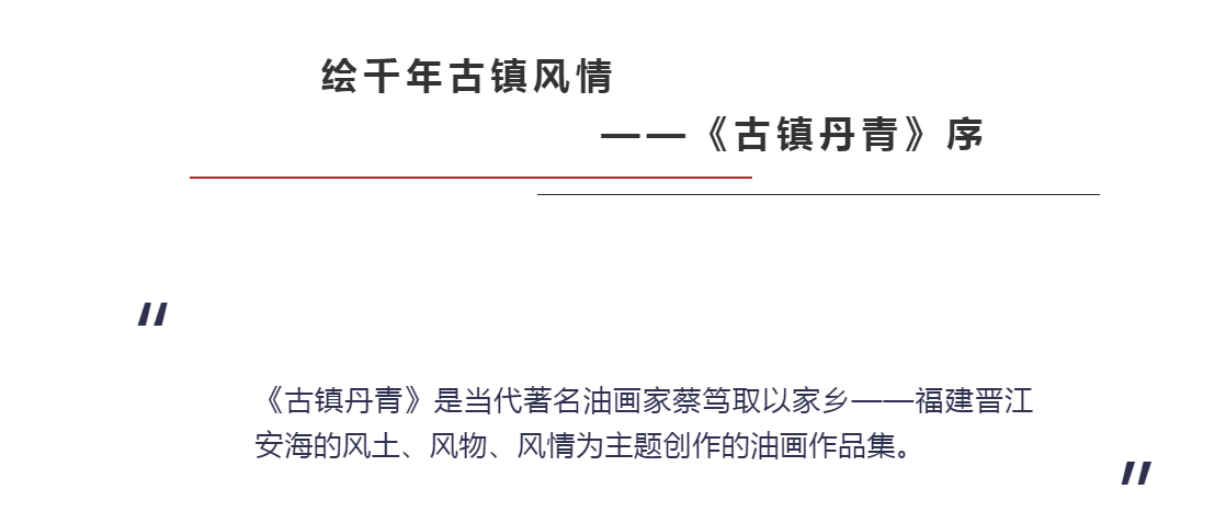 《古镇丹青》的每一幅画作背后都有一段感人故事,每一幅作品都是画家对故乡这片文化积淀深厚的热土的眷恋,是对故乡美好明天的祈愿。这是一个艺术家的良知,也是一个艺术家不断超越的标志。《古镇丹青》是一部艺术、文化、乡情高度结合、高度统一,并具有较高思想性和学术性的艺术作品集,它用油画艺术的魅力宣传安海,让更多的人了解安海、走进安海。