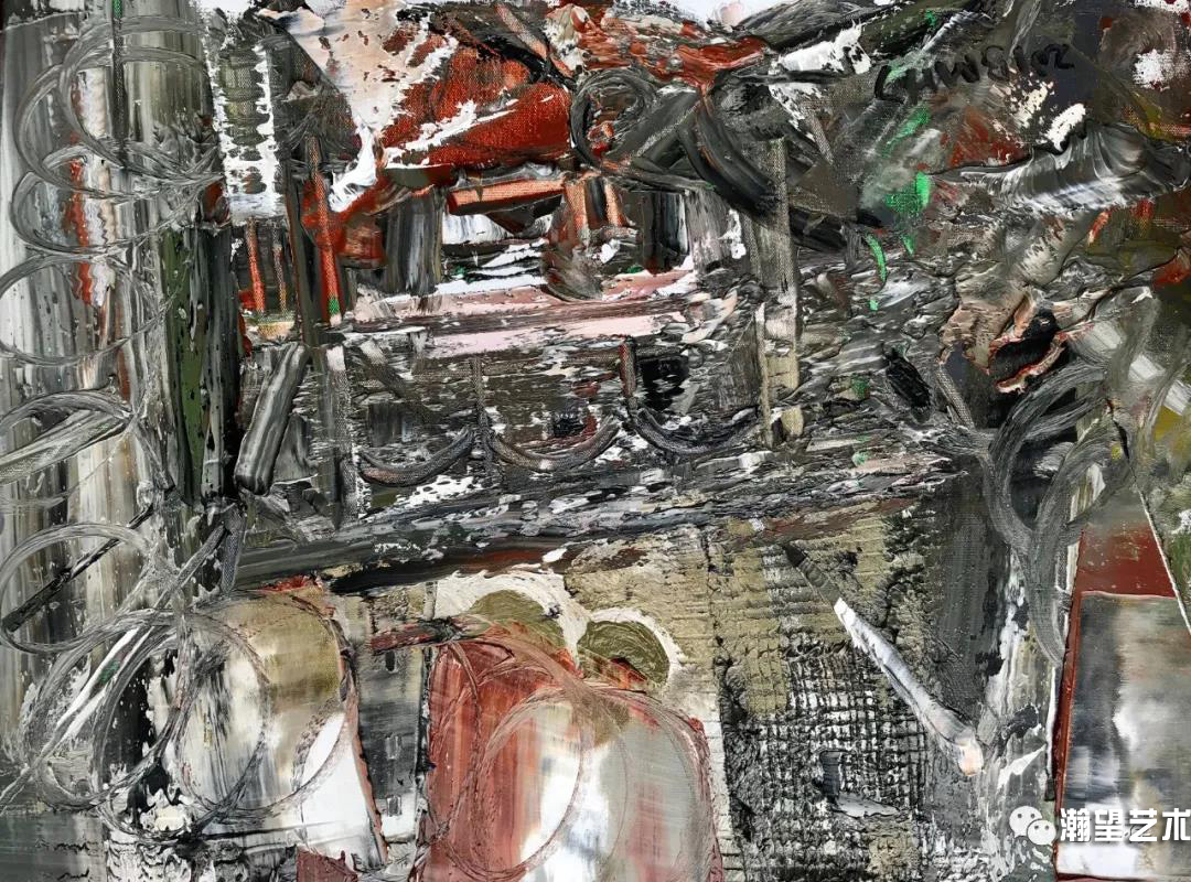 这种如血的红色也是其《红船》系列的主导色,在《红船》中,浓烈的红色经由激情的刮、擦、涂、抹,如火焰般熊熊燃烧。