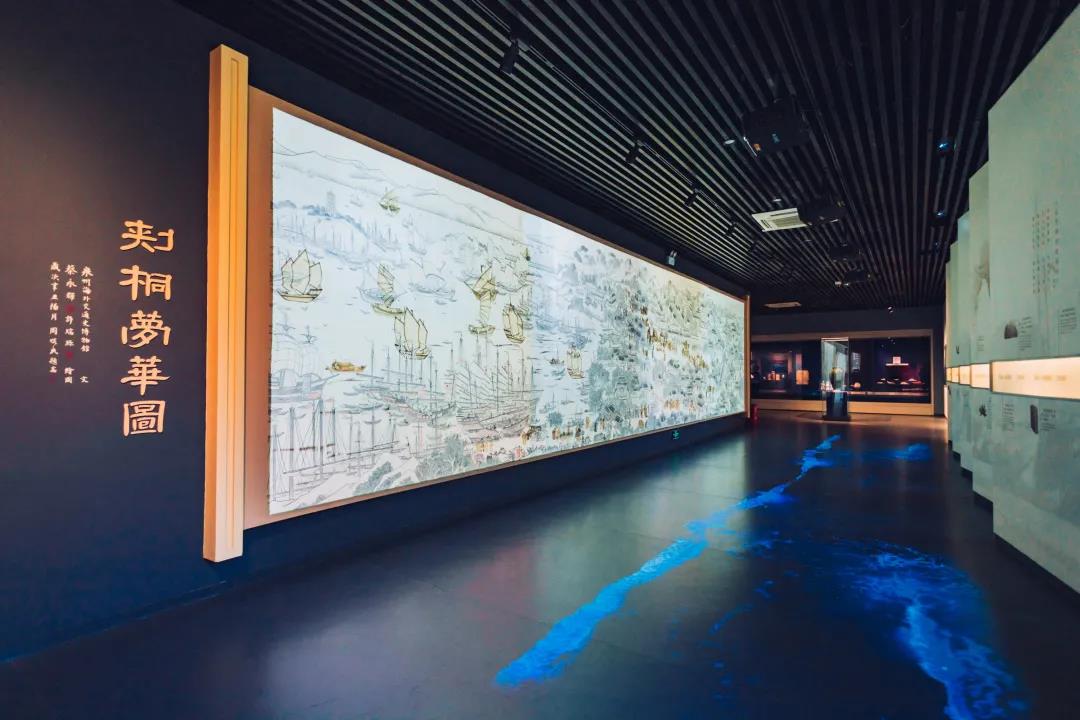 如今,《刺桐梦华图》被永久收藏于泉州海外交通史博物馆,放大后的复制品被悬挂在海交馆内,馆方还通过投影让整幅画动了起来。在这里,一眼便能望穿千年前刺桐港、刺桐城无尽的繁华。