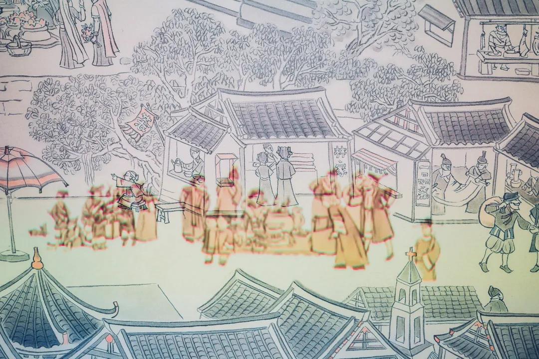 一幅《刺桐梦华图》凝练而华丽地呈现了宋元泉州包容的文化,开放、繁华的海洋商贸,丰富多元的民俗与宗教形态,以及人民安定富足的生活环境。更令人惊叹的是,这幅4米长的画卷上绘了近千个人物。