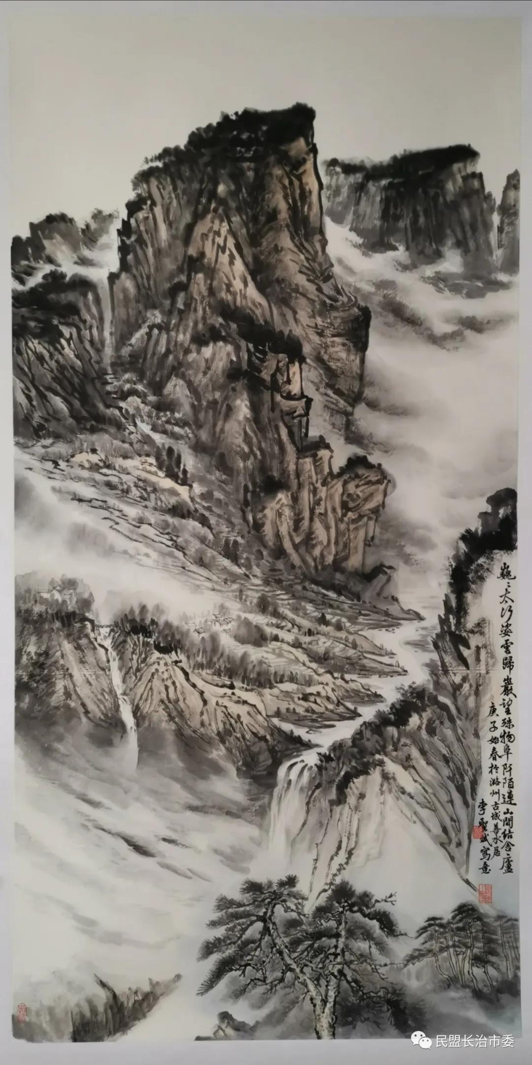 李圣斌研习山水艺术多年,太行之路,既是他用脚丈量过的条条山路,更是他的艺术之路,山水之路。