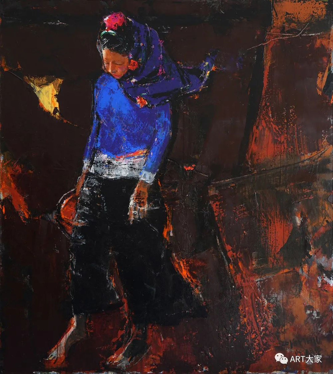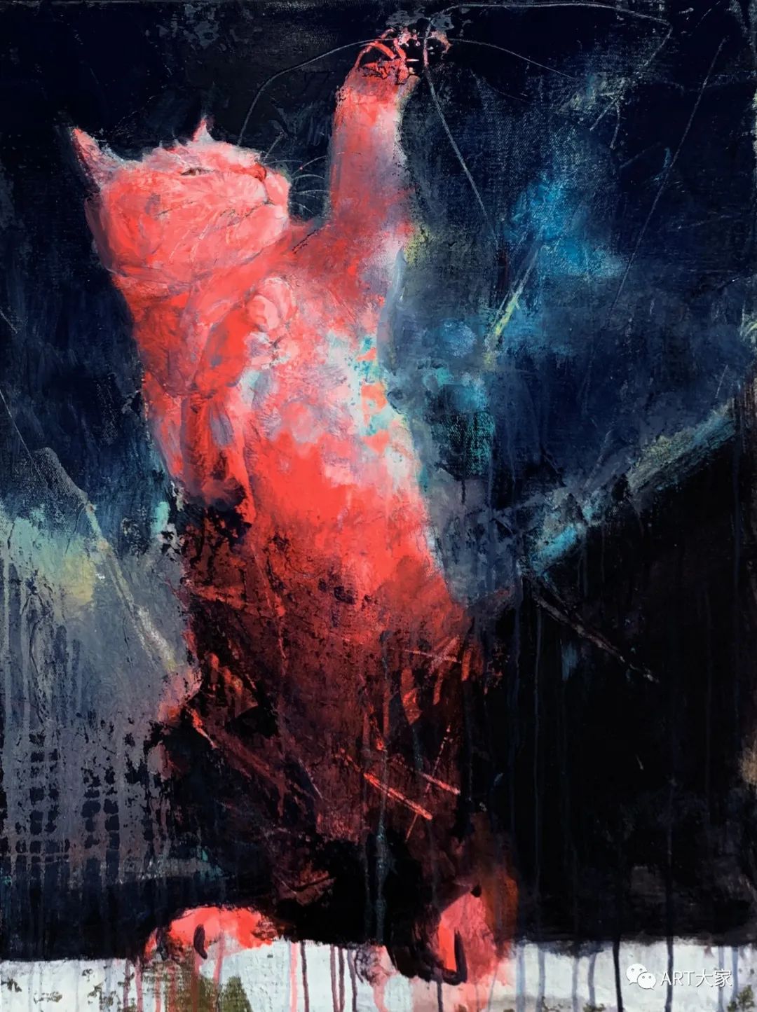 就象平常我想喝的烈酒一样,我的画画处于一种即将被动的情绪下进行。首先给我带来的是平静,之后是焦虑、不安、狂躁,直至颠覆着绘画的极致情绪,从狂乱的线或形中寻找不同的图式,来切换心里的位置,那种狂乱的偶然性在我内心极其矛盾,我不断寻找出自身的问题与平衡,一种不曾体验过的形与色,摆脱束缚与困境,推动我走进复杂的心境,去扒开我感悟到的绘画里的另一个世界。