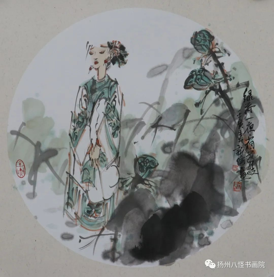 不过,所谓见性见情,还有一疑,就是为什么他的兴趣不在于用盛唐丰肥而美的女性表现,而是选用清末民初女性服饰下的女性形象作为表现对象?他想说什么呢?王新伦告诉我,他给这些系列作品起了个名字,叫『秦淮旧梦』。显然,这是透过清末民初的女性去寻梦。那么,他寻的是什么梦呢?显然不是大唐盛世的堂煌之梦。那么,他的梦与秦淮有关吗?秦淮,是位于南京的一条明清朝代城市繁华象征地,那裹的美人艺伎,也曾经是当时达官富商和文人们最为钦赏并乐于交往的对象。不过,我却对王新伦图画中表达的寻梦,不做如斯理解。在王新伦的图画中,那些女性人物的服饰,往往是当时最为传统、最富于中华个性特征的装束,她们往往活动于富贾仕林的园林之中,透露出的是一种名媛贵妇的大家气派,显然,这不是风尘气质所有的。那么,王新伦的『寻梦』,到底是什么呢?