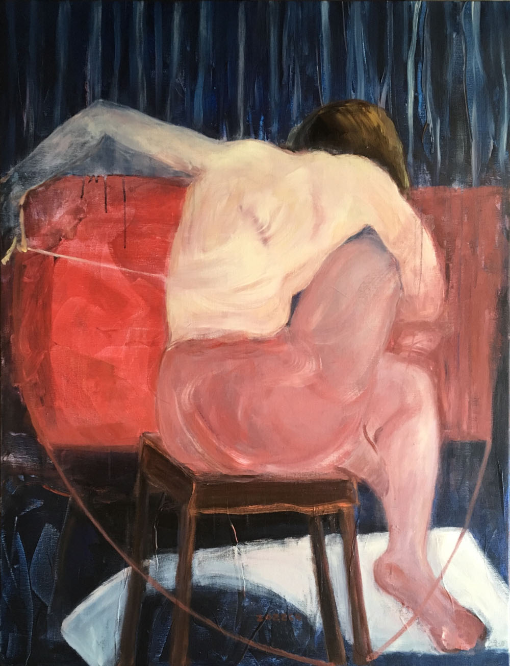 王聪柔弱,纯粹,简单,见生人怯生生的,典型的江南女子。我在无以计数的画画人堆里把她的画刨出来。她的画作,与她的整个人,形成强烈反差:勇猛,畅快,大气,自信,诚实。像一个玩嗨了的孩子沉浸在自我享受中而忘掉了外部的一切。人性之情欲在私密空间中奔腾狂欢,非一般装模作样的世人很难窥探到这番情境。她的画作显得有些不合时宜,她的秘藏在心底最深邃处的情欲幻想,不经意被人看到了,你猛然回头,会发现这是一件既欣喜又难为情的大事!这种画作,不像是在一个传统意识浓烈,虚情假意盛行的当下现实生活中能见到的真实,是她没被教化没被挤压过的天真流露。我长期行走在大片的沙砾堆中,发现她的画作在那里孤独地闪着光,有些剌眼,但令人动心。