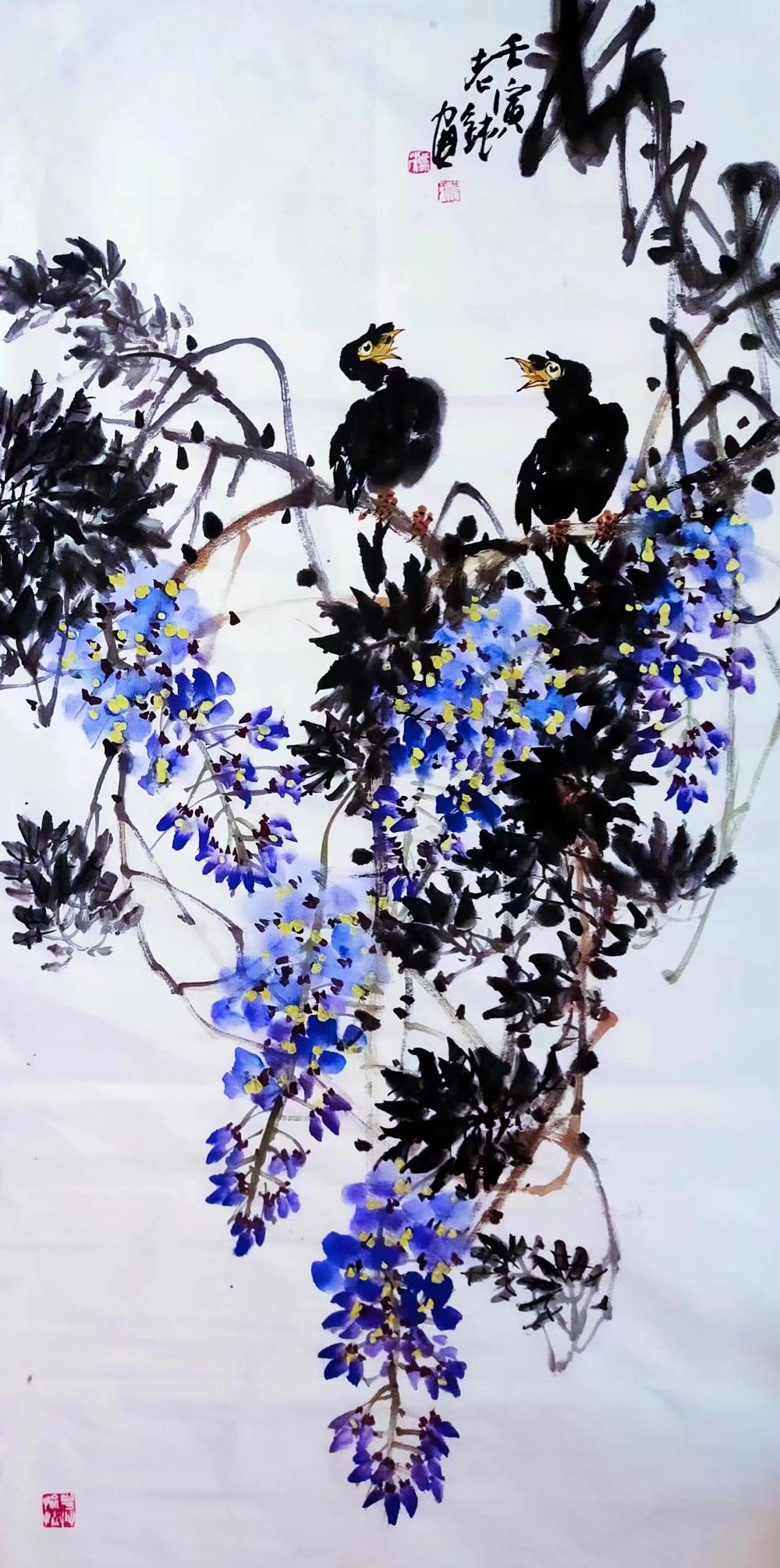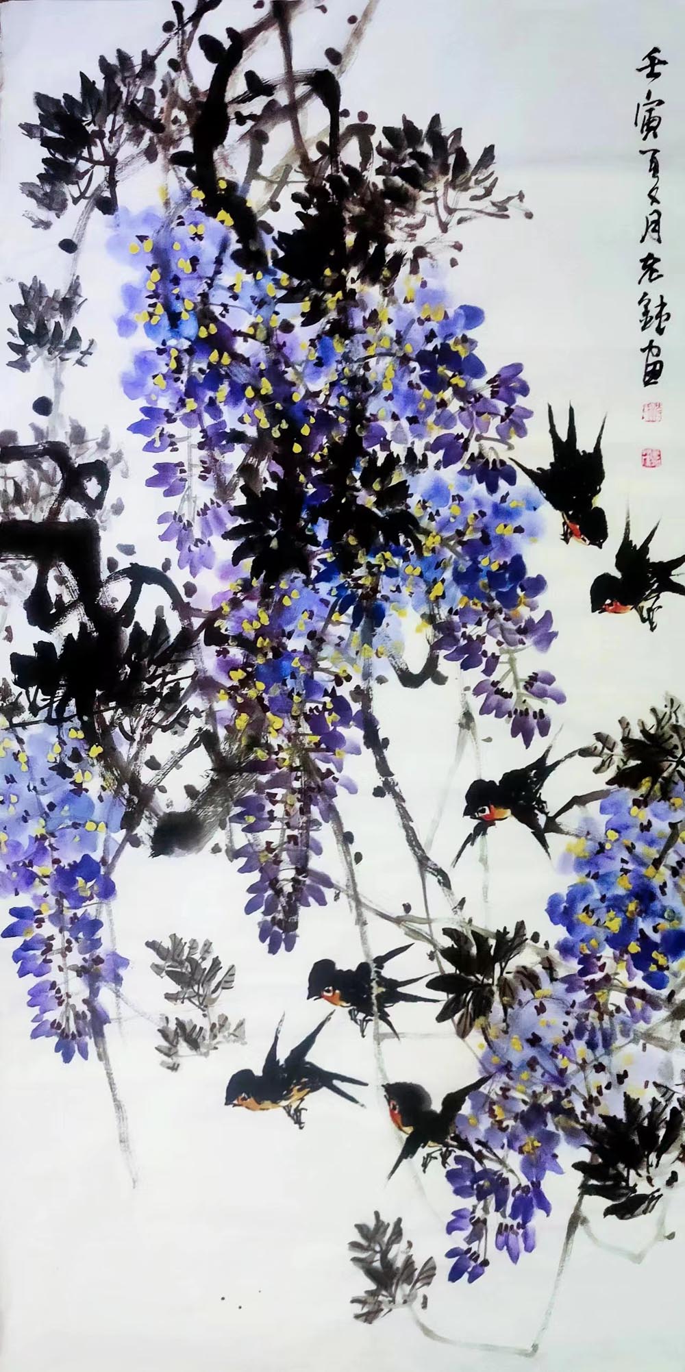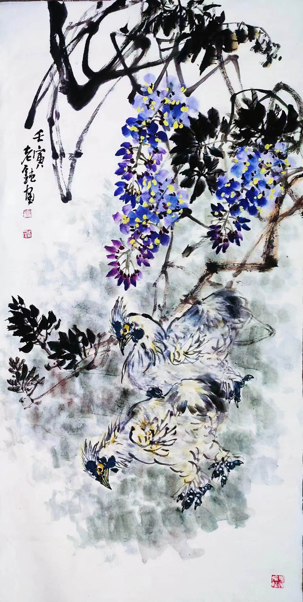 《紫气东来》 壬寅沈舜茂紫藤写意画