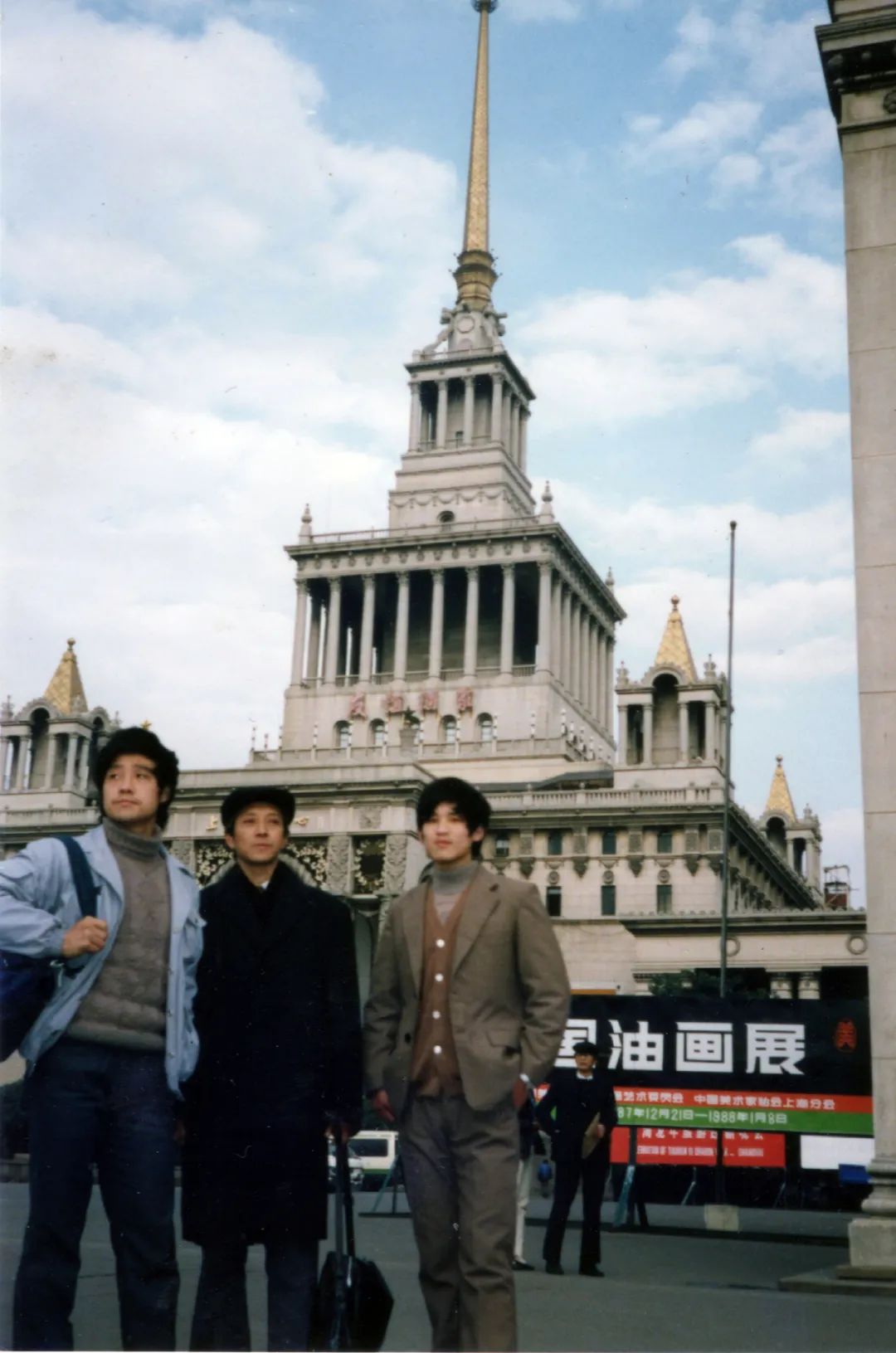 郑忠、班主任师铁岭老师、沈如春在上海看全国油画展。