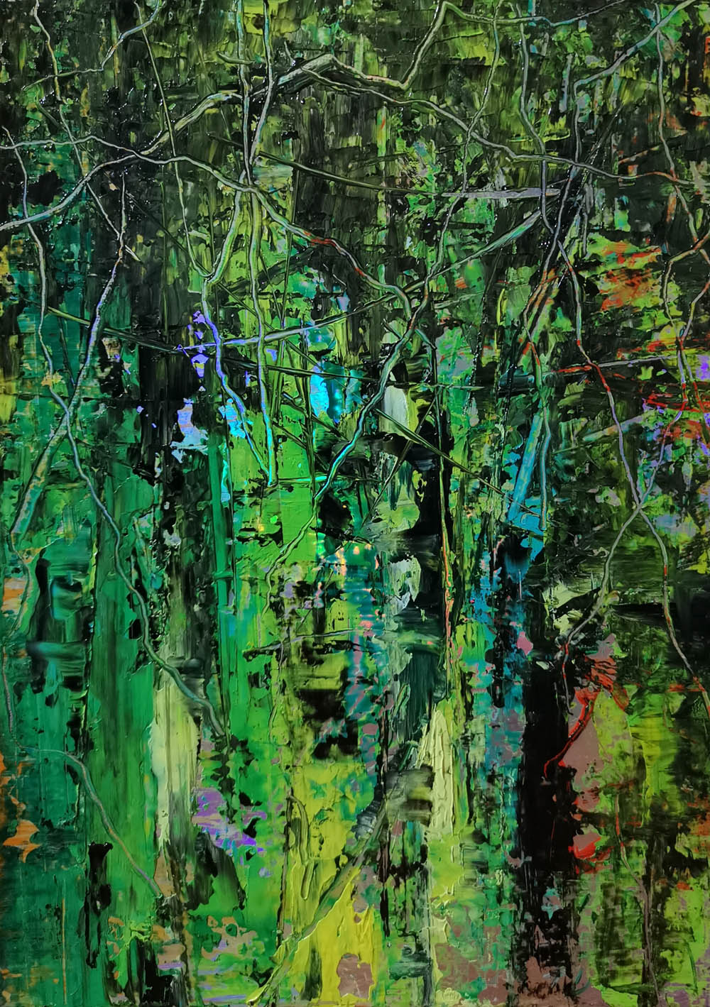Lin bin, male, from Fu'an City, Fujian Province (born in 1966), professional artist; He graduated from Xiamen Institute of Arts and crafts, Fuzhou University in 1989. Now the studio is located in the dense forest of ancient trees in the deep mountains, and is accompanied by the forest countryside all the year round; I feel the light of life at sunrise and sunset, and I am particularly fascinated by myself; Let yourself realize the insignificance and tragedy of nature's life and death, which are associated with the relationship between light and shadow; The light of insight made him abandon the original expressionist painting mode and began to study the light quality. Finally, he highly integrated the color pigments with the light change painting substrate, introduced various specific light experiences of the mountain jungle into the abstract light expression, and created the "light painting" with abstract expression under the image light.