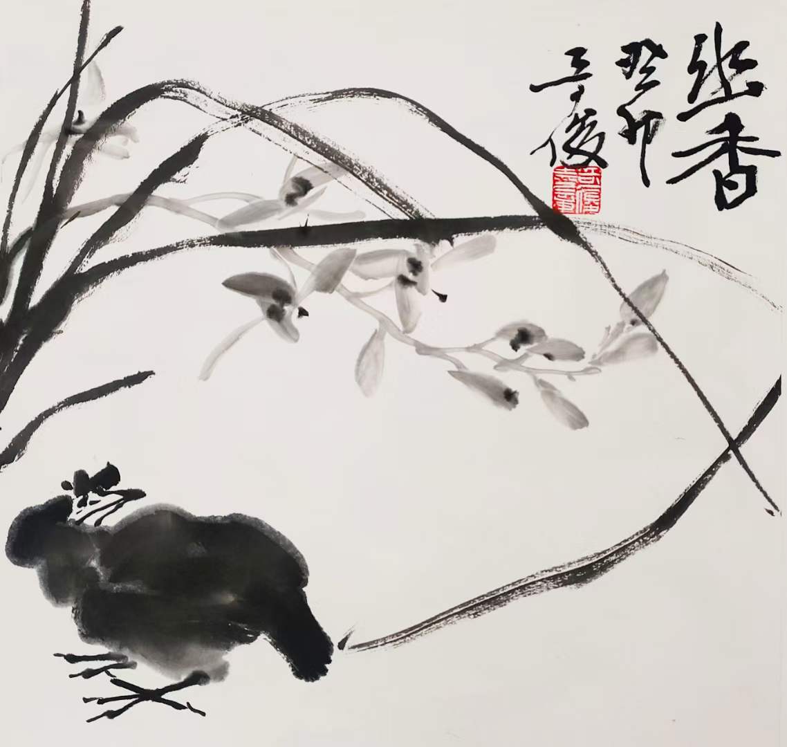 今天,我们看到雷奇俊的这批中国画作品,多以折枝的方式来布局,讲究以少胜多,给人以一种无限的遐想。纸本水墨类的作品,一枝一鸟的构图方式,与对徐渭、八大的研习有很大的关联。而纸本设色一类,则倾向于吴昌硕与齐白石多一点。除此之外,雷奇俊的人物画也是值得一提的。他的人物画,不刻意去精雕细琢,而是有意勾勒重要部位,做到有的放矢、言简意赅。这样既做到细节刻画,也保留余地让观众有足够的想象空间。因为在每位观者的脑海之中,都有一个“完形” 的概念,画面人物即使比例不完整,甚至不准确,也不妨碍对人物画的表现力。所以,我们在评论一件作品的时候,不要不知趣的去纠正艺术家的有意创造。他也认为,从事中国画艺术创作者,没有全面的功夫,不论是在画类上还是在技法上,都理应重视全面修养,诸如懂得诗、书、画、印四位一体的经营。当然,艺术家在这里要处理好博与约的问题。这批人物画作品,以轻松灵动的笔法来描绘,人物背景处理与画面氛围是相一致的、和谐的。当今画坛上,不少艺术家对画面物的搭配,没有经验,这样就会显得很不舒服。