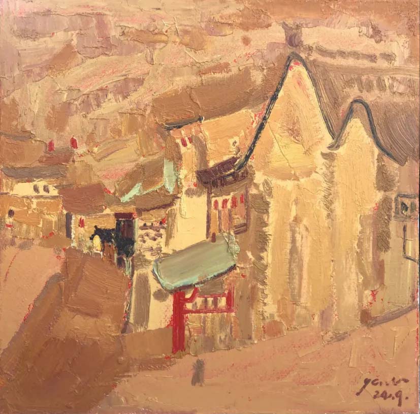 画面红黄的组合强调其结构的块面感,又厚实堆叠起的山峦是有才近期给我最深的感觉,作品的结构在不断地变化。情境的转变势在必得他将日趋走向成熟,他摆脱模块中程式走向自然,在更自由地发挥着绘画语言的独特魅力,能从众多的写实绘画中汲取经验得以提炼他的造型、色彩与画面多层的复叠和凸显出他有意无意在摆脱传统绘画的苦涩走向更重精神的写意油画风格的表现形式,这使其作品充满生机盎然的当下气息,这种艺术表现更具有直接性和当代性。
