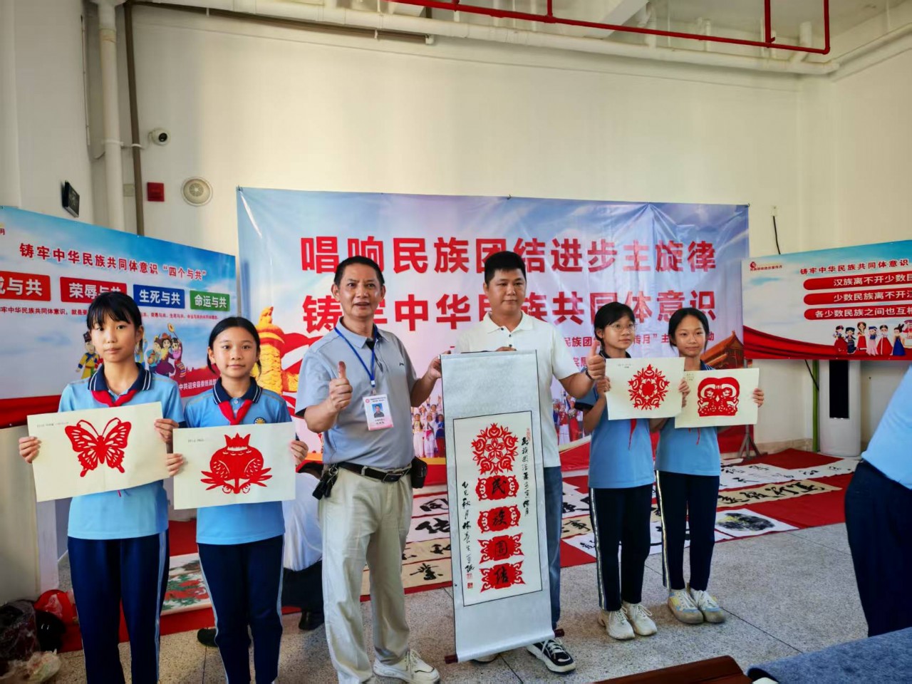 林养生参加畲族美营村举办民族团结进步宣传月活动现场传授彩扎剪纸手指书法