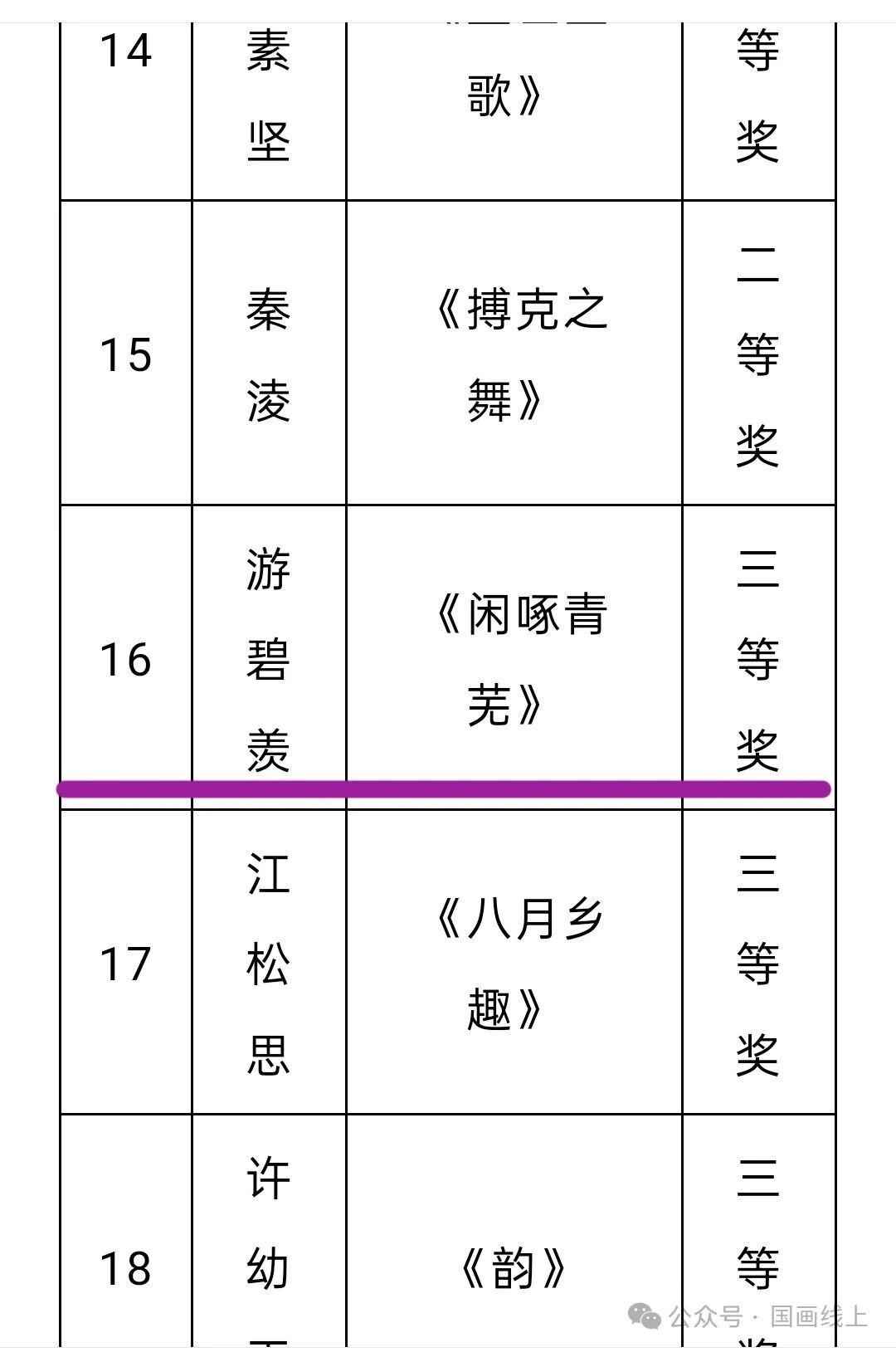OY美术工作室三位学员作品获奖,颜春蓉《载得浮香归》作品荣获一等奖,游碧羡《闲啄青芜》