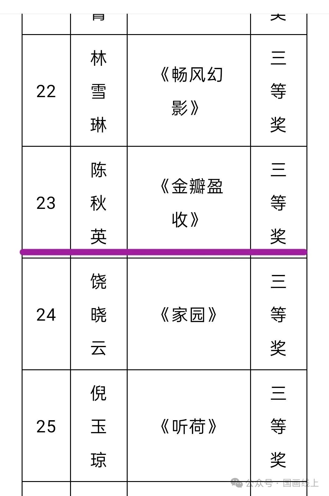 、陈秋英《金瓣盈收》作品荣获三等奖。