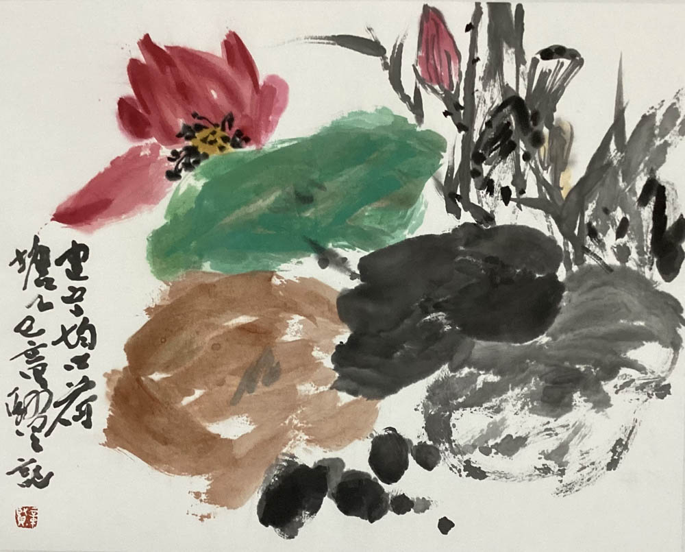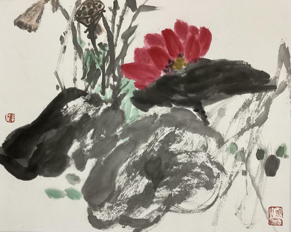 傍晚时分,骄阳西斜,暑气稍退,荷塘复归静谧。晚风轻摇荷影,花瓣凝着余晖,荷之婀娜,光之柔和,触动神经,再度铺纸,笔随心动,全然忘却时光流转。