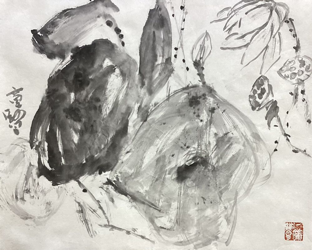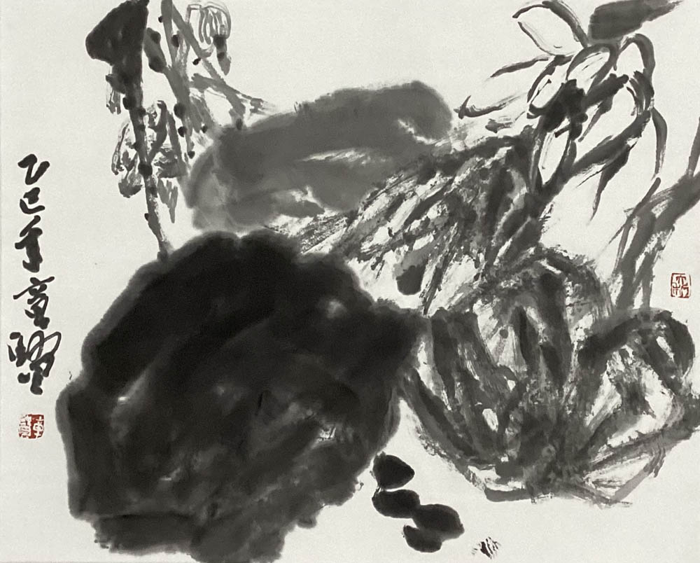 天光熹微中,雾气如纱,漫笼碧水,荷花或含苞凝露,或绽瓣凌波,千姿百态藏于清辉薄雾间。清风拂过,荷香混着晨气沁入心脾,画意如涌,水墨落纸,恰逢晨露轻沾,宣纸晕染出自然肌理,墨荷似沐天地灵气,苍劲中含柔润。未及辰时,骄阳升空,日光灼灼如炙,皮肤骤感火辣,方体会“太阳咬人”的真切。匆匆收笔,回住地静待暮色降临。