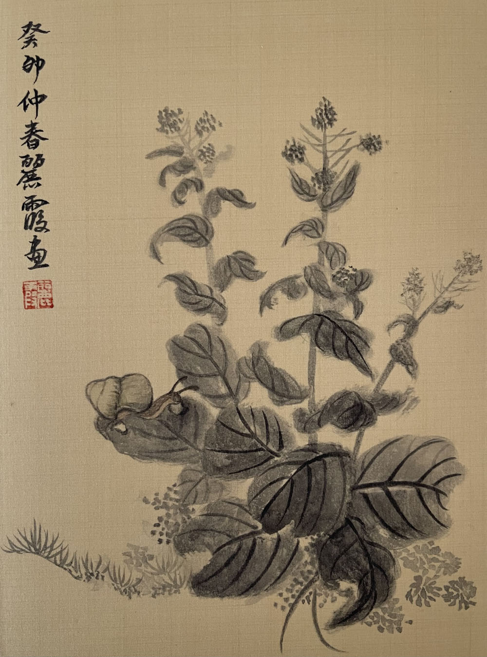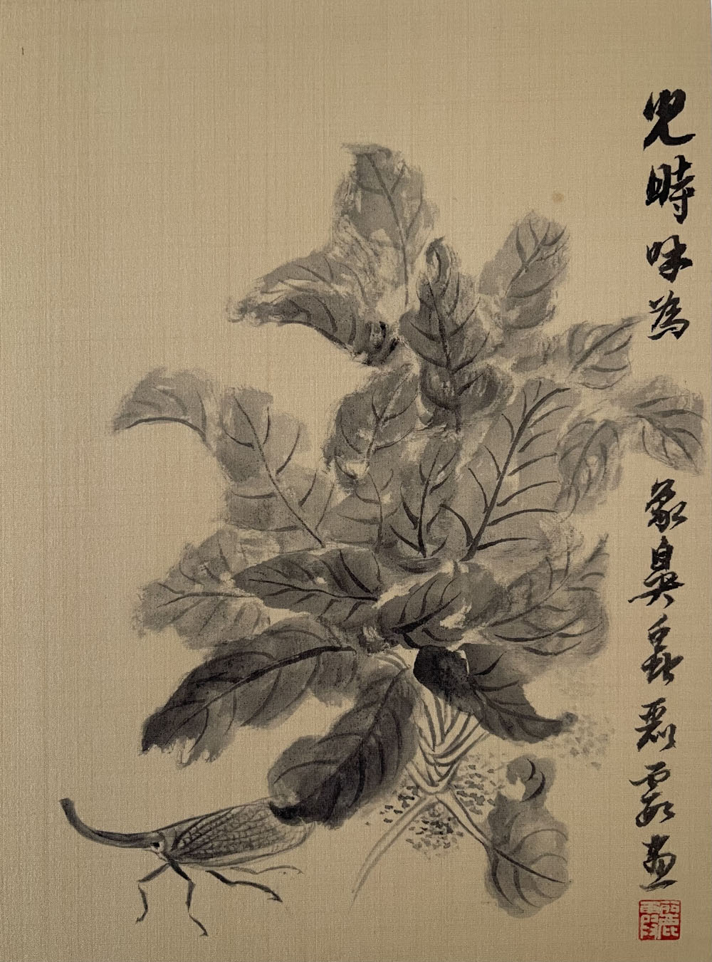 绘静默之姿:芙蓉没骨染就,湿润中见清骨;花菜干湿互破,写其朴拙本真;