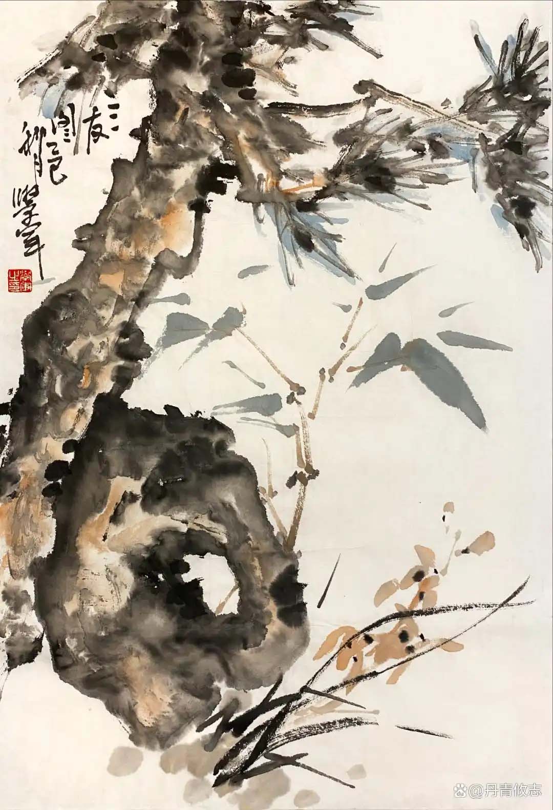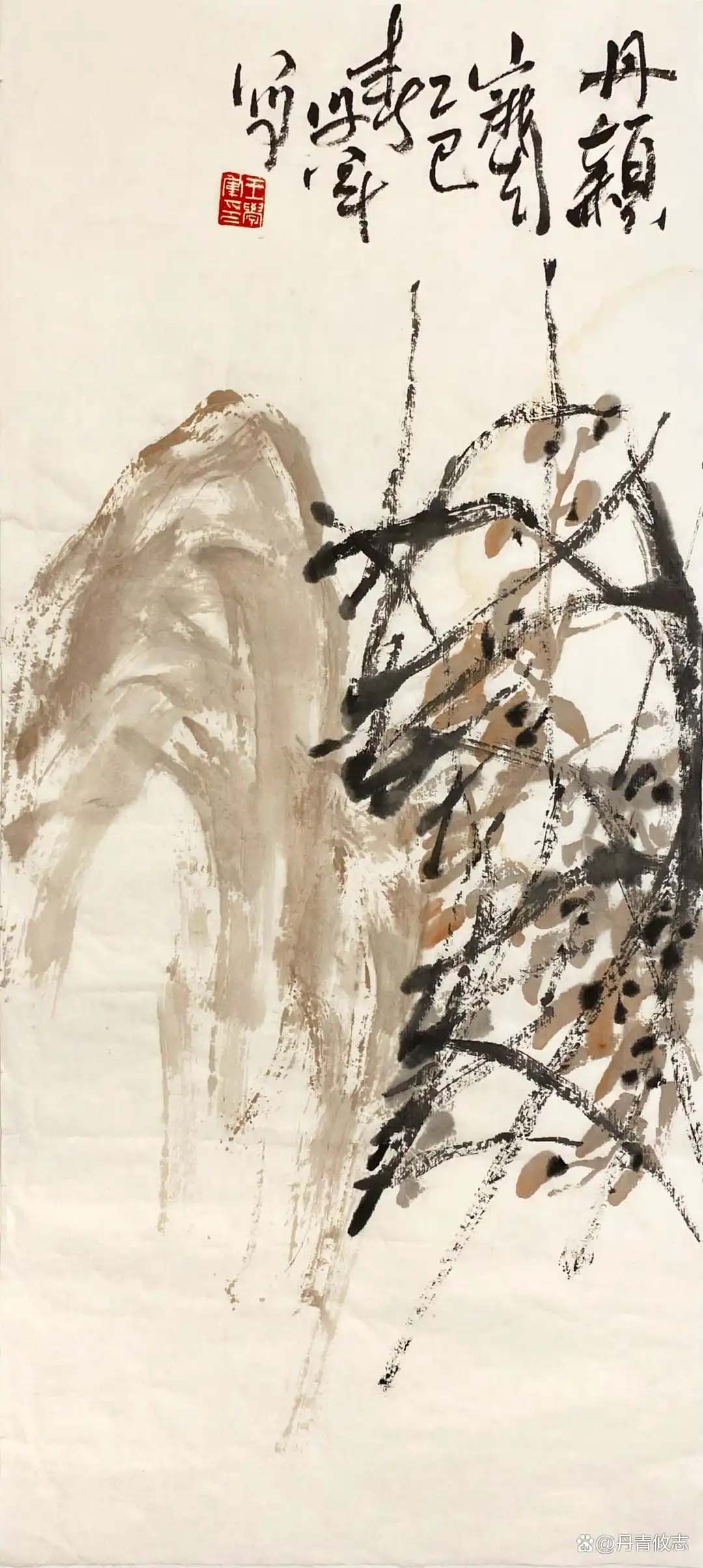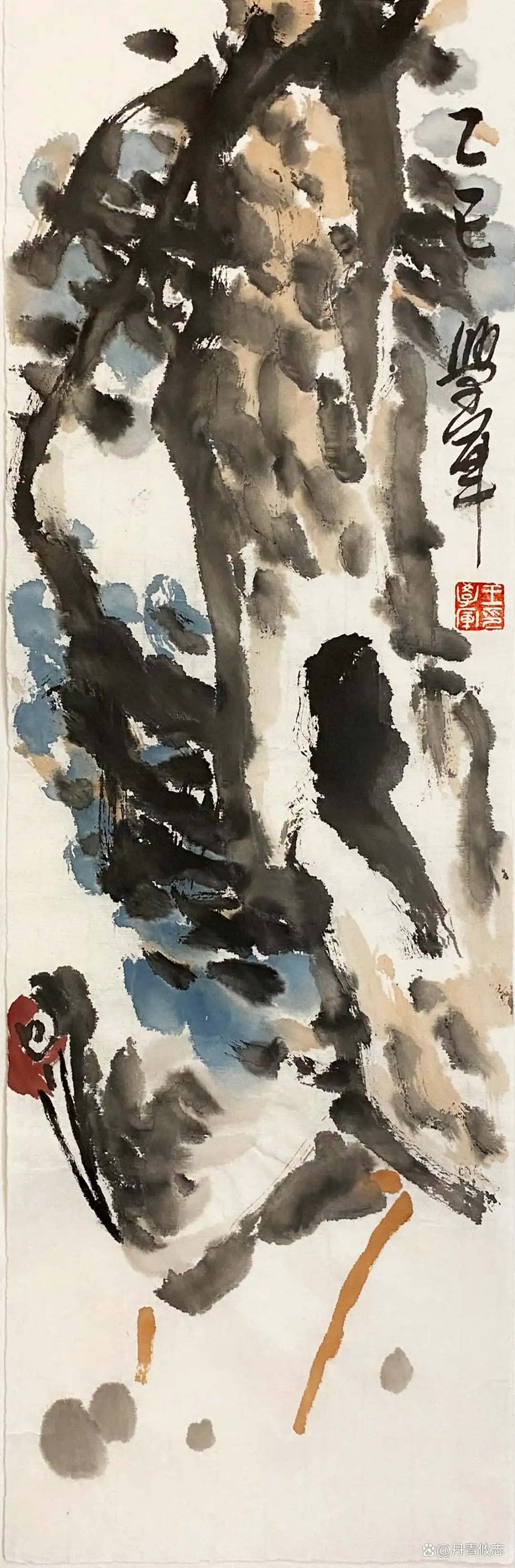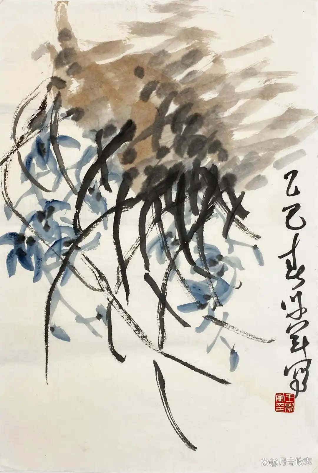 “写意”它不仅是绘画的一种形式,更是精神。学艺七载,从小写意到大写意的过度,从描摹到抒发,从含蓄到放荡不羁,是对绘画的浅显认识与理解。欧阳修言:“心意既得形骸忘”、“古画画意不画形”让我对“意”跟“形”的认识有更高的理解。“意”就是一种情感、一种思想、一种想法。在绘画中写意是通过“象”来表达的,所谓“立象以尽意”。“象”与西方艺术的“形”不一样,“形”是可看的,“象”是超越这个可看的自然,而最后造出来的“形”,“象”是已经形而上的“形”,既“大象无形”。不是自然形、不是常形、不是经常看见的,但是是有形的,这种“形”是表达“象”的形,它是中国特色的艺术造型观。“大象无形”是中国特点,观念是思想的结晶,是一种哲学层次,是形而上的一种看法。