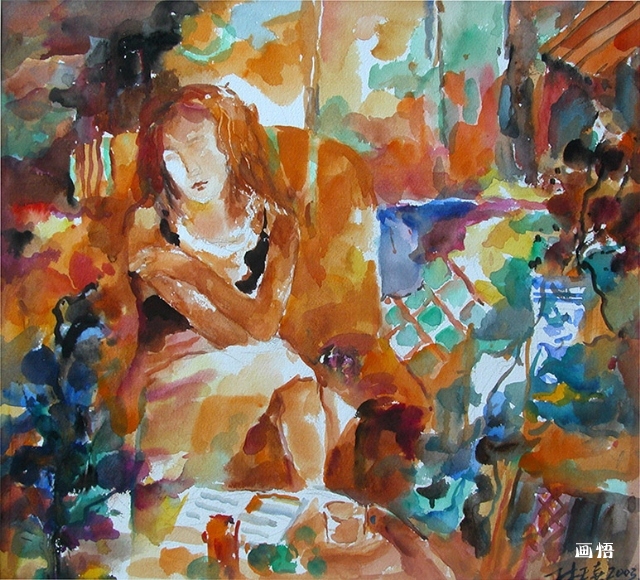 如果说林天喜的绘画感觉是纯粹主观,然而画面的色彩线条关系明显具有某种外在的真实,如果将他的作品与真实的风景对照又显得差别甚远,他的画面似乎少了什么又多了什么,这种少与多伴随整个写生过程,从这种少与多的处理可以看到,他作某种“规定”的语言处理。怎么理解“规定”的概念,他内心的敏感与不满足一成不变的意识,突出表现在他不停留在表面的观察,不满足于眼睛所看到的印象,他在观察的基础上作了某种内心回返的运动,用眼睛观察,用心掂量,心否定眼睛的观察,眼睛否定心的思忖,这种思忖与观察形成某种较量,凸显一颗不安的心灵。