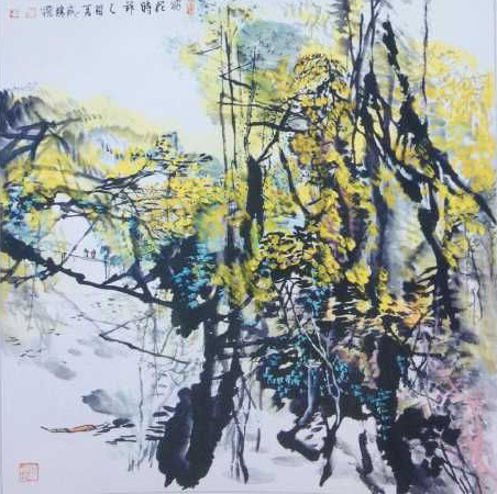 鹏飞早年一度在山区工作,一有空就登山涉水,观察四时之变化,领略山川之灵秀。对云峰撄动,丘壑幽深,都有深刻的感受。他对景写生,收集素材,逐渐地摆脱早期的习作气。从认识传统、学习传统的“师古人”,进而“师造化”,再进而“师诸心”,这是一个长期而艰苦的过程。