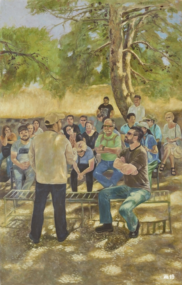 人们看着,听着,想着,摸着,期待着,那是一种物化为墙的记忆,对生命完整与分裂的历史记忆。流动的人群是流动的灵魂,只有一类灵魂驻足了,驻足在白色的圣洁面前,沉浸在光的照耀下。他们找到了什么?画家的言说较为含蓄,那举起的手、交握的手暗示着一种遇见。答案在另一幅人物肖像中凸显出来。