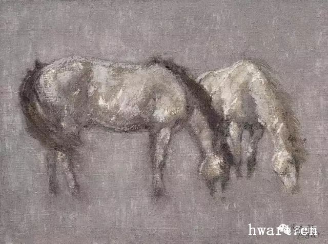 这段变化明显而成熟,画了十多幅“蒙古女人和马”的系列画,作为艺术符号的人与马,都各自有意义的上了画面。蒙古人牧区的妇女是令人佩服的,她们不依附于男人,高度独立,自尊、自强、自信。蒙古马是更堪入画的符号。纯朴、骄健的蒙古妇女和蒙古马组合成画面,更能表现各自的魅力,象《午后的风》、《拢》、《启》、《制》、《秋日》等都是。同时也单就蒙古马也画了一些画,象《秋韵》、《长嘶》等。