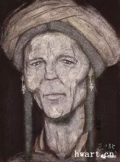 开始了综合技法的运用,但还是用油画颜料完成,办法多了些,没有对画面上粘贴什么发生兴趣。新出了些金、银等颜料,还有丙稀,都试着用,掺和着使,离光影效果更远了些。象参加全国十届美展的《老人》就是,还有《年轮》、《瞩》、《妇女像》、《蓝鬃白马》等,所画内容没什么变化,因为我还不想画别的。